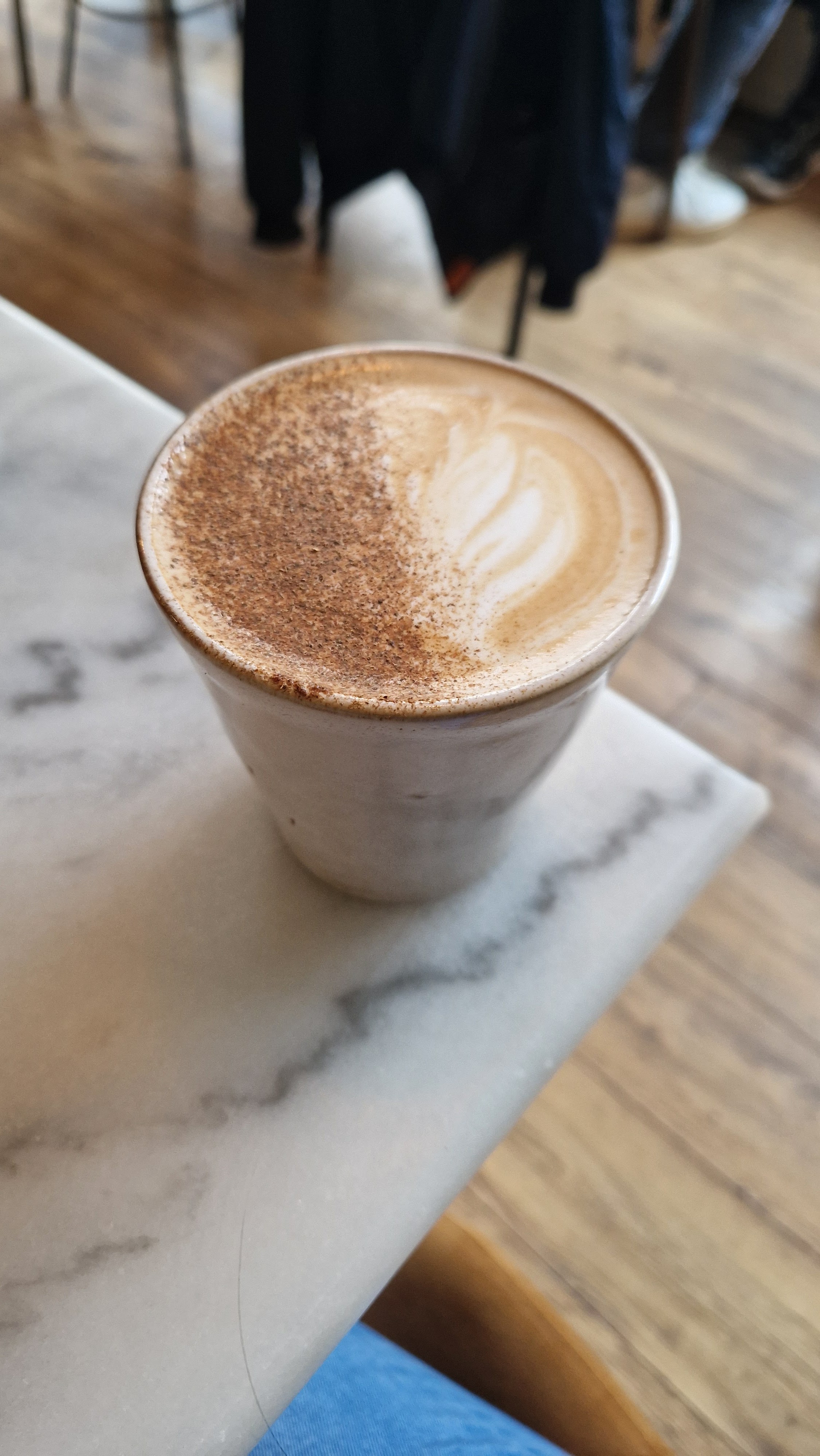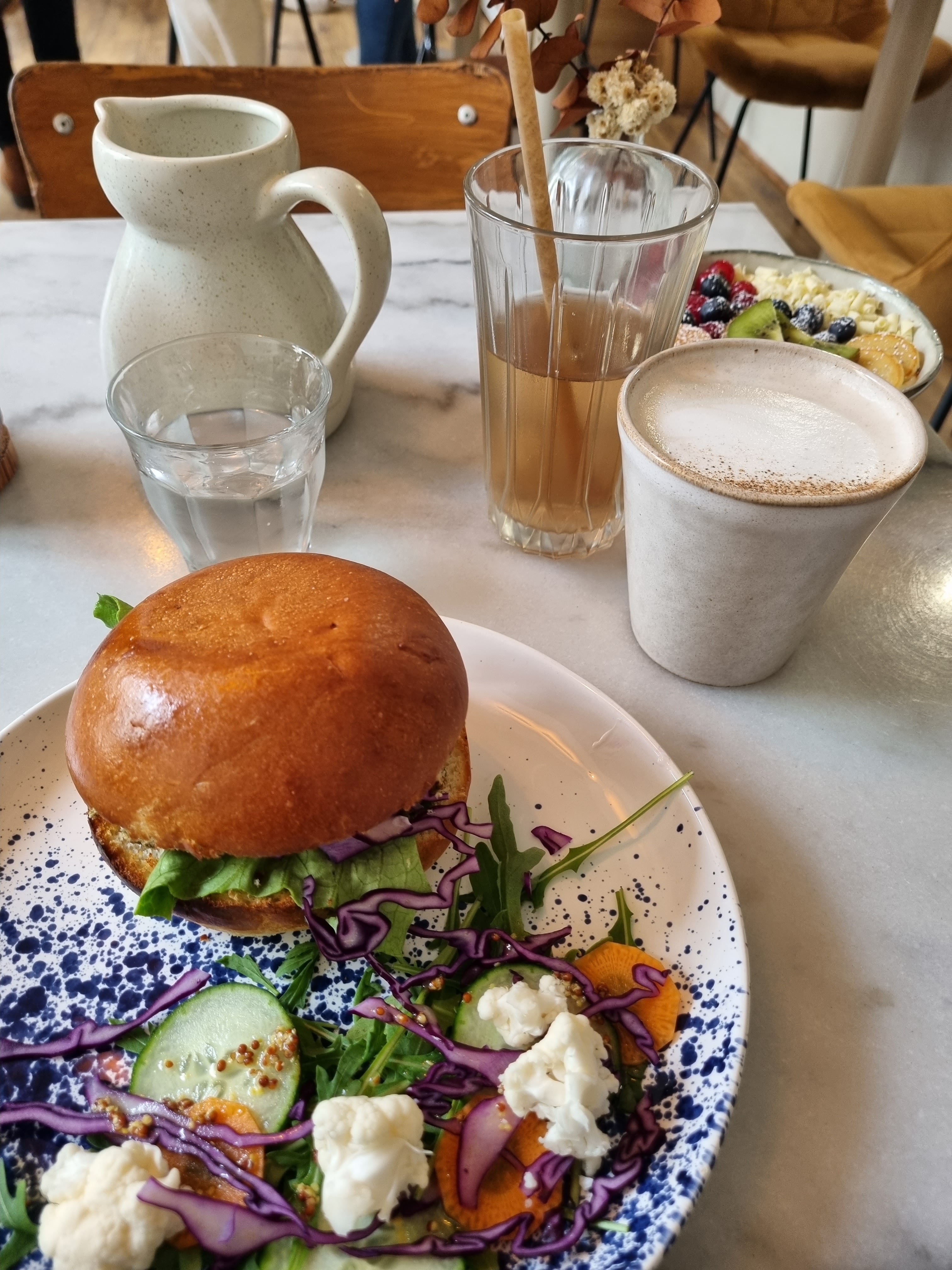 Venus pour le brunch, nous avons pris la formule à 25€ : boisson chaude, boisson froide, plat salé, plat sucré. Les jus froids étaient délicieux et les plats sucrés également (j'ai adoré le banana bread au chocolat) !!! L'endroit est agréable et le service très sympathique. Je ne met que 4 étoiles car j'ai été un peu déçue des plats salés : j'ai pris le plat à base de halloumi rôti, poireaux snackés et pain pita et je trouve qu'il y avait vraiment trop de pain pita par rapport à la garniture, surtout qu'il était un peu sec :/ Donc le plat est assez déséquilibré au final ! Et les boissons chaudes (café latte et chai latte) manquaient un peu de goût.