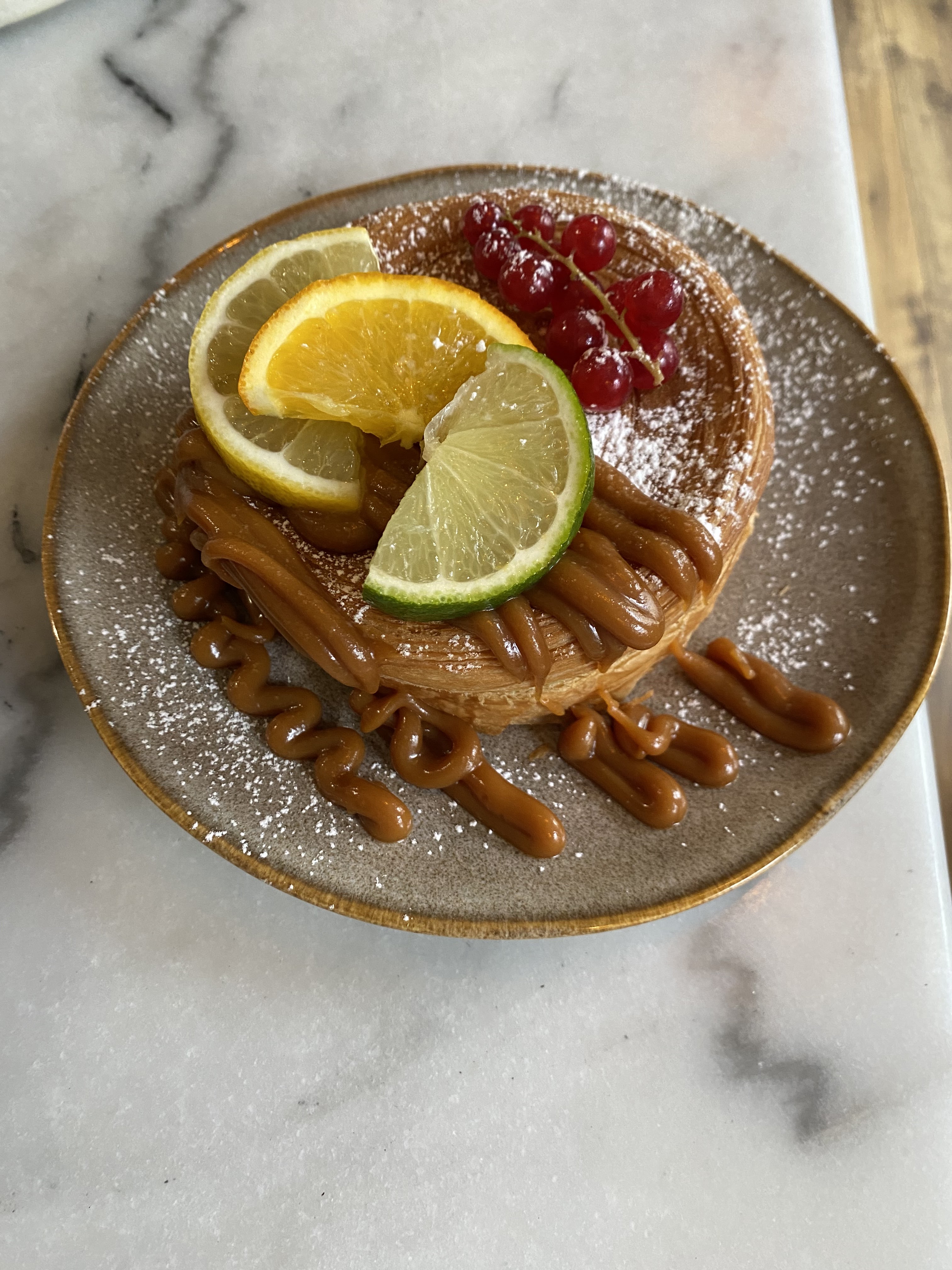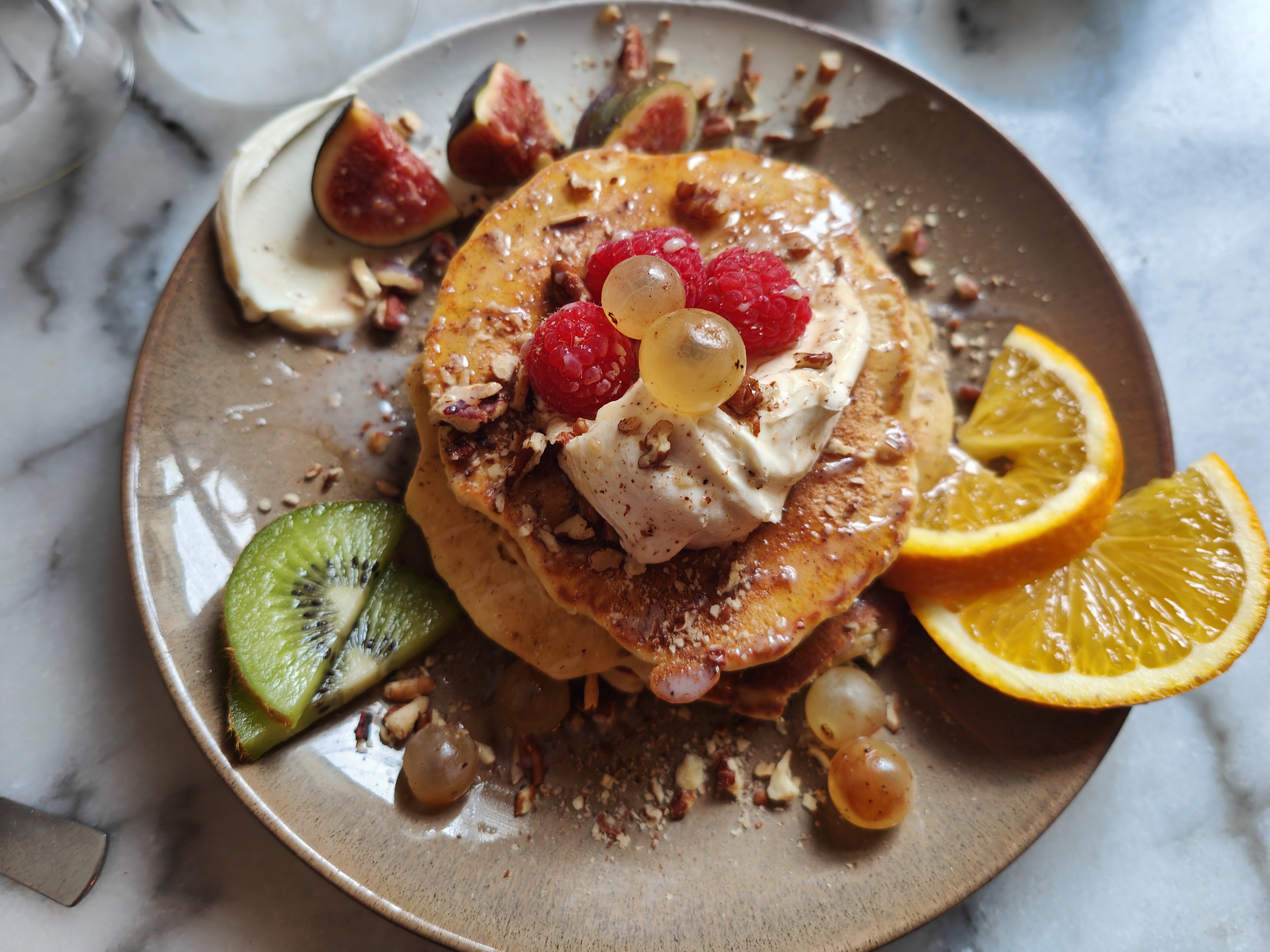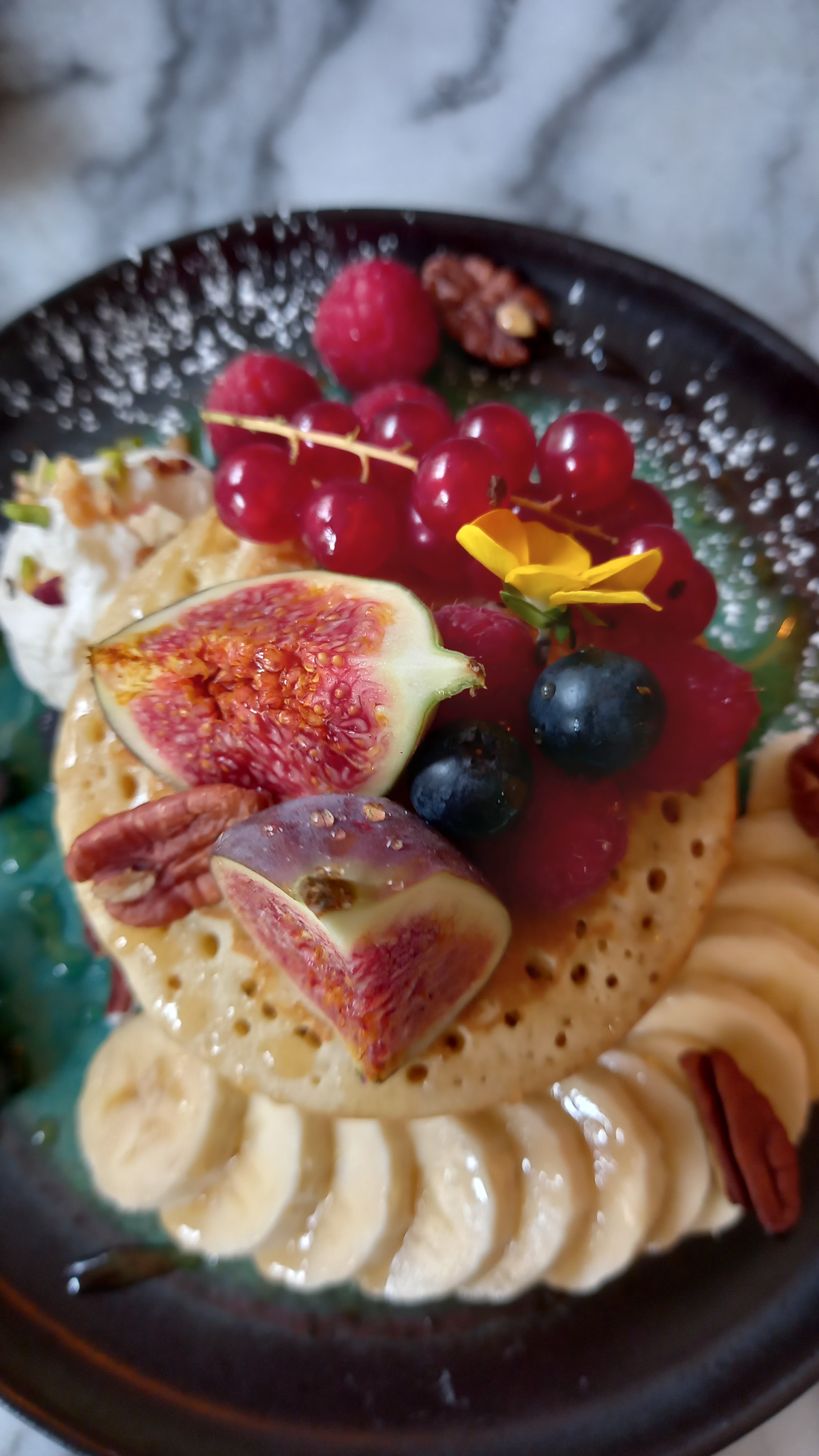 J’ai bien aimé le pancake, le goût y était, vraiment bon, cependant, quantité disproportionnée, comme vous voyez sur la photo, 4 énormes pancakes couvertes de chantilly, c’est bien, mais il faudrait une sauce sirop d’érable ou chocolat proposé comme partout, autrement il était sec et là si vous la voulez il faut payer un supplément. Je trouve dommage, car j’ai payé un supplément pour une cuillère de sauce chocolat , mais je n’ai pu manger qu’un pancake et demi, donc plus de 2 pancakes est parti à la poubelle, c’est 15 euros pour une boisson chaude et un pancake donc. Tout simplement du gaspillage et ça c’est juste pas possible a nos jours!! Vous payez surtout l’aspect esthétique de l’endroit et des plats ( pancakes servi dans une assiette trop petite, jolie, mais encore une fois, disproportionnée) car il y a pas bcp de choix, œufs brouillés, viennoiseries etc.. je n’ai pas vu. Je n’ai pas non plus aimé le service. Enfin, il y a d’autres cafés assez sympa dans le coin, qui eux, proposent des vrais brunch pas instagramables, mais très bon et a des prix corrects.