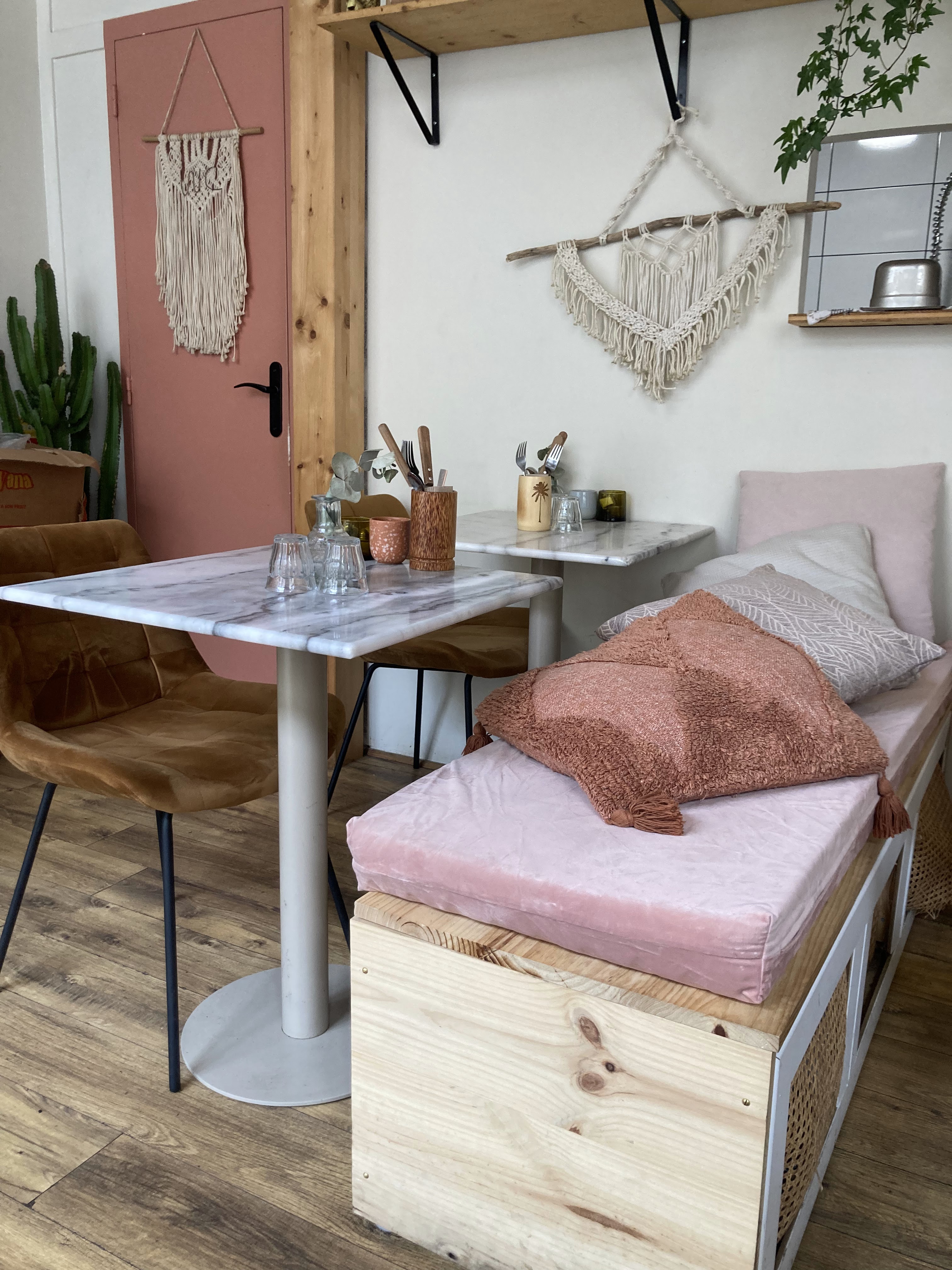Belle découverte et super brunch. De passage à Bordeaux j’ai cherché le top des meilleurs brunch qui a indiqué celui ci, et c’est vrai ! Petite salle mais deco vraiment jolie, et alors les plats ..!!! J’ai trouvé super de pouvoir choisir son plat salé et son plat sucré. J’ai eu du mal à choisir tellement tout avait l’air bon et j’ai été bien conseillée par la serveuse. Les boissons sont très bonnes ( j’aurais aimé un plus grand verre de boisson fraiche cependant ! ), j’ai choisi la focaccia aux carottes et pois chiches rôtis et c’était délicieux !!! Mon conjoint a pris les ribs et s’est aussi régalé. En sucré nous avons tous les deux pris la gaufre aux myrtilles et là je n’ai pas les mots pour décrire à quel point elle était incroyable ! Un moelleux comme je n’ai jamais goûté , fondant dans la bouche, meilleure gaufre de ma vie vraiment ! Si nous repassons par Bordeaux, nous reviendrons c’est sur.