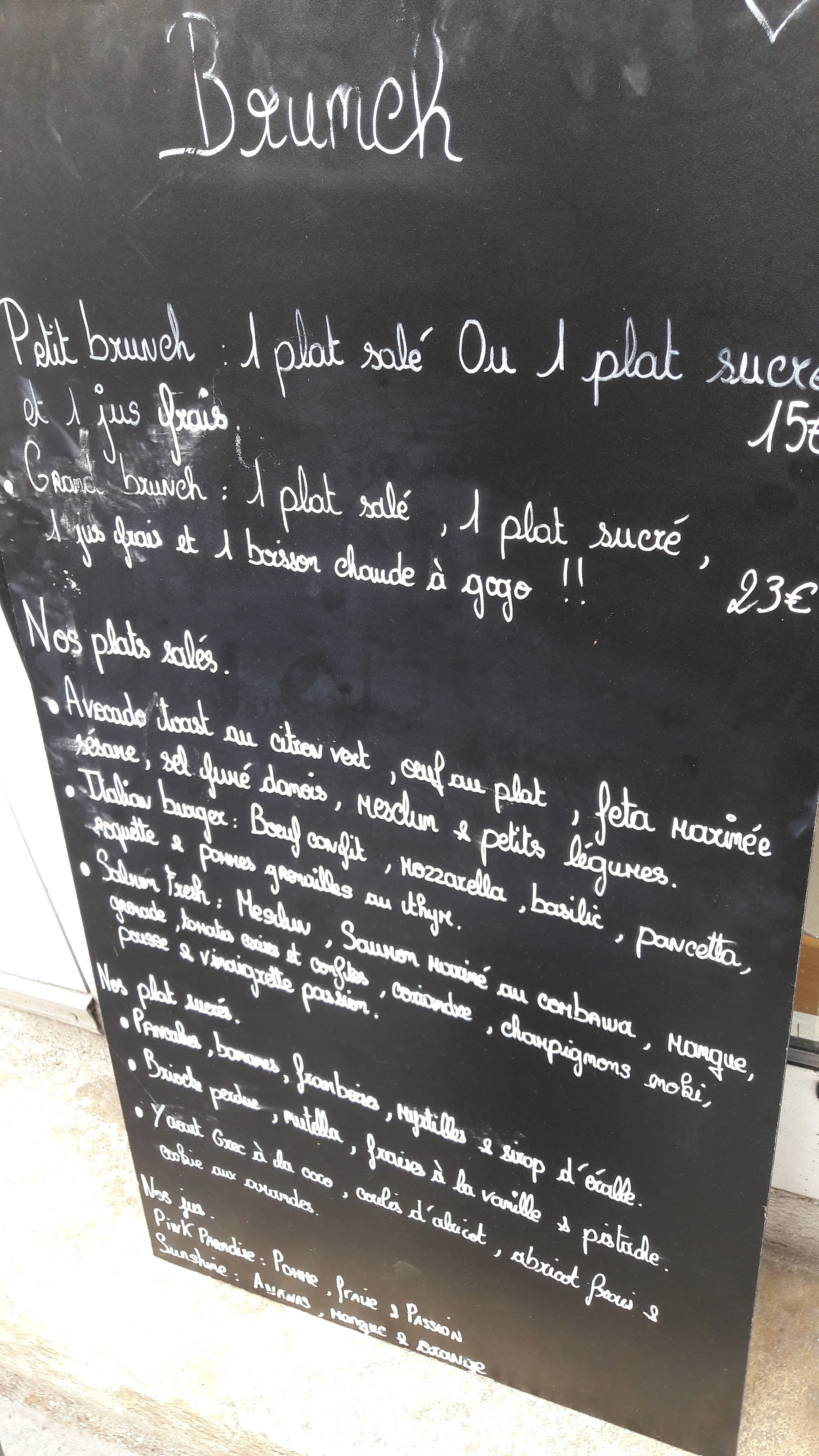 Restaurant brunch, qui ne fait donc que le déjeuner mais sur un horaire large. C’est ainsi que nous avons pu déjeuner un dimanche à 15:00. L’ambiance était jeune. Deux menus brunchs, un à 17€ (plat salé et boisson) et un à 28€ avec du sucré en plus. Les plats sont originaux et bons. Il y a des burgers mais aussi pains grillés avec garniture et salade… Un moment agréable.