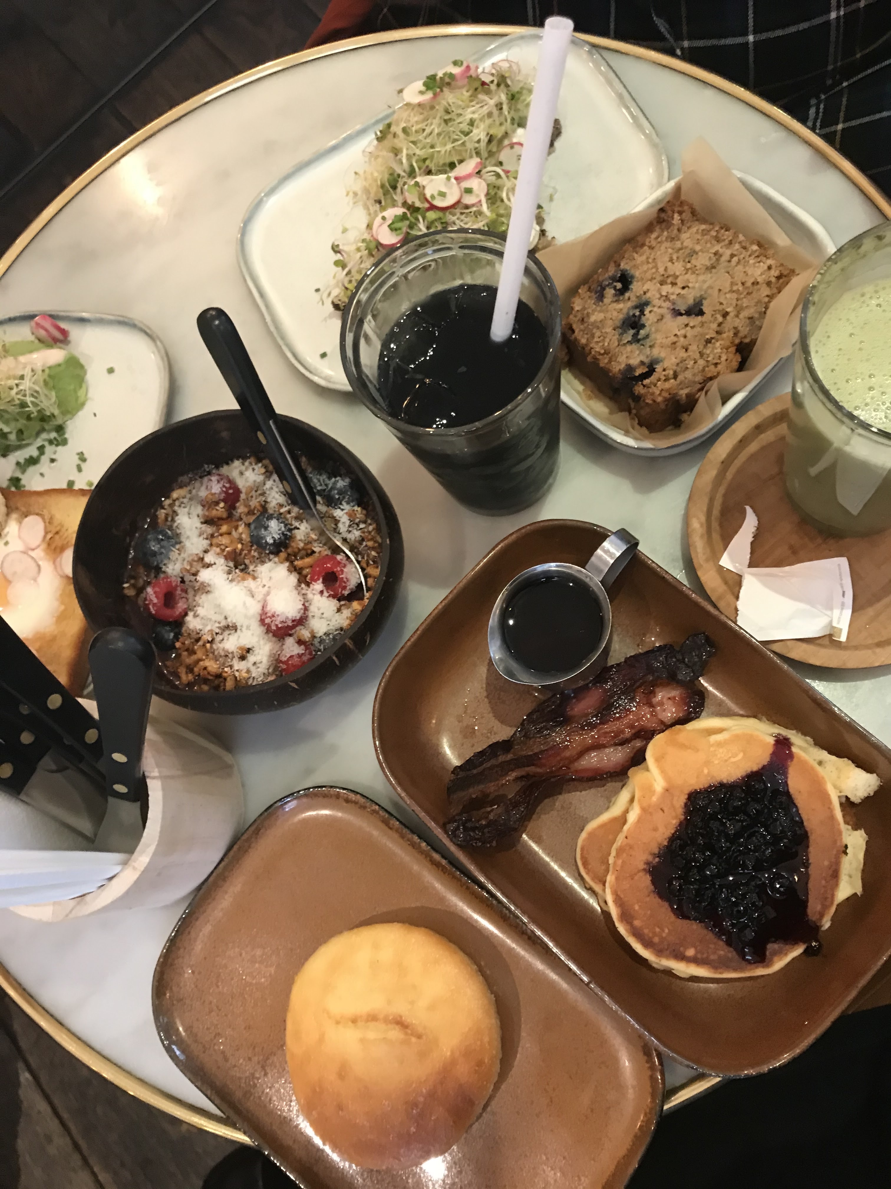 Joli coffeeshop avec beaucoup d'affluence le week-end. Risque d'attente élevé des qu'on est plus que 2. Service agréable et plats bien présentés. Par contre, quartier oblige, les prix sont un peu élevés et les portions assez réduites (oeufs benedictes pas très garnis). Je recommande l'avocado toast plutôt que les pancakes..
