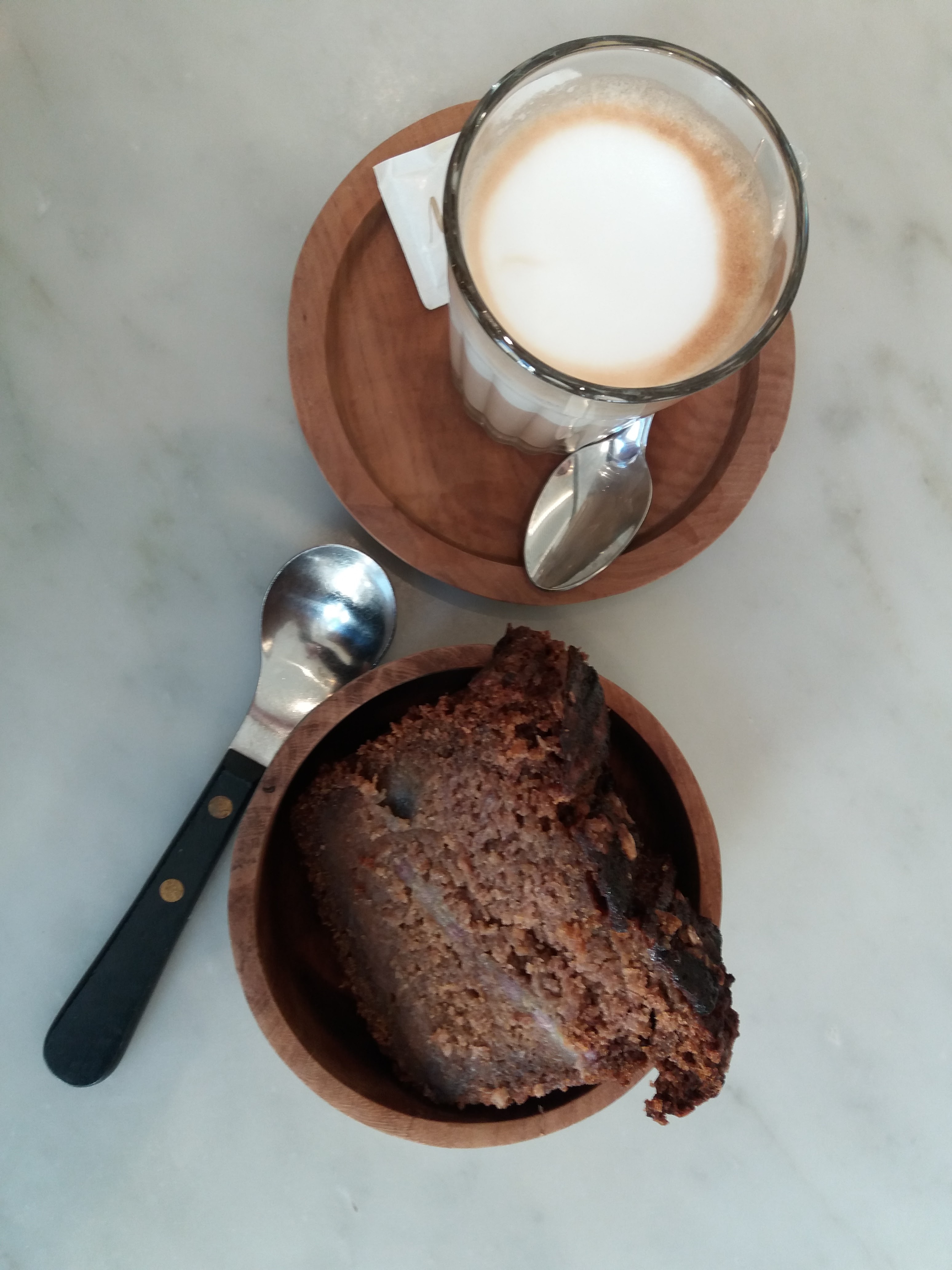 Venue un samedi aux alentours de 14h, forte affuence, ce que je peux comprendre alors on prend mon numéro et on me dit d'aller faire un tour en attendant et que je peux revenir dans 20 min. 20 min plus tard, toujours pas de place alors on me propose d'attendre sur une chaise dehors et de me choisir une boisson pour patienter. J'attends patiemment et gentiment qu'une table se libère, ce qui arrive 30 min plus tard. Les petites serveuses ont vraiment été adorables, je leur en remercie ! Cependant, j'avoue avoir un peu tiqué lorsque des amis de la patronne ont une table beaucoup plus rapidement que moi, sans avoir à attendre ... en ce qui concerne mon assiette, je n'ai rien à redire : mon salmon breakfast sandwich était super bon ! Après mes petites mésaventures, je m'attendais à un petit geste commercial qui n'est malheureusement pas venu ... dommage ... Cela reste tout de même un sympathique coffee shop. Je suis revenue une seconde fois en milieu d'après-midi, très peu de personne donc j'ai été installée et servie très vite par une adorable jeune serveuse. Ayant pour habitude de prendre le carrot cake au Marcelle rue Montmartre, je prends la même chose cette fois-ci. Ici la part est énorme, c'était bon même si le gâteau était un peu sec et friable.