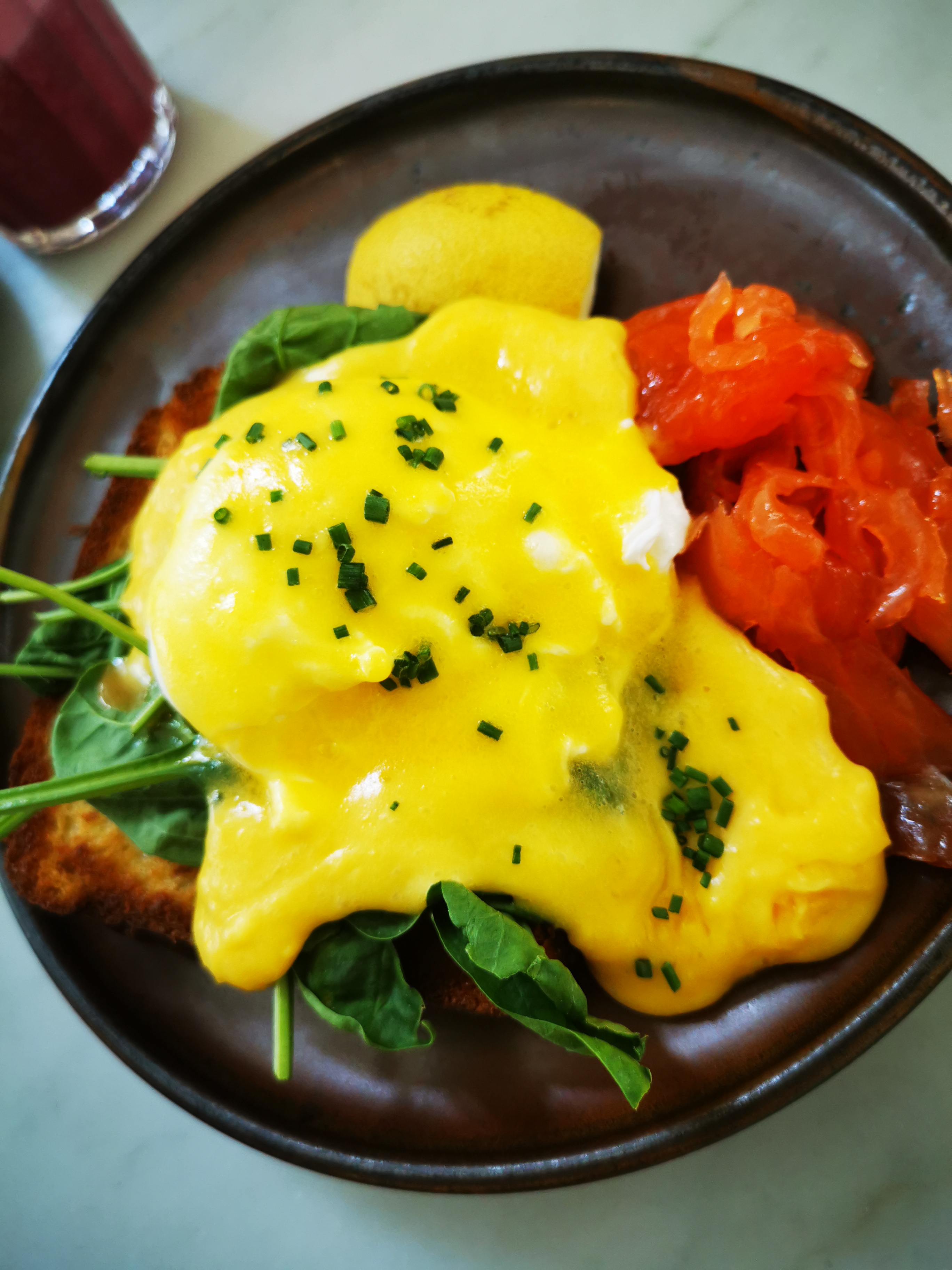 Les oeufs Bénédicte sont très bons! Dommage que la brioche soit arrivée en un bloc au lieu de 4 triangles car elle n'était pas bien cuite à l'intérieur.