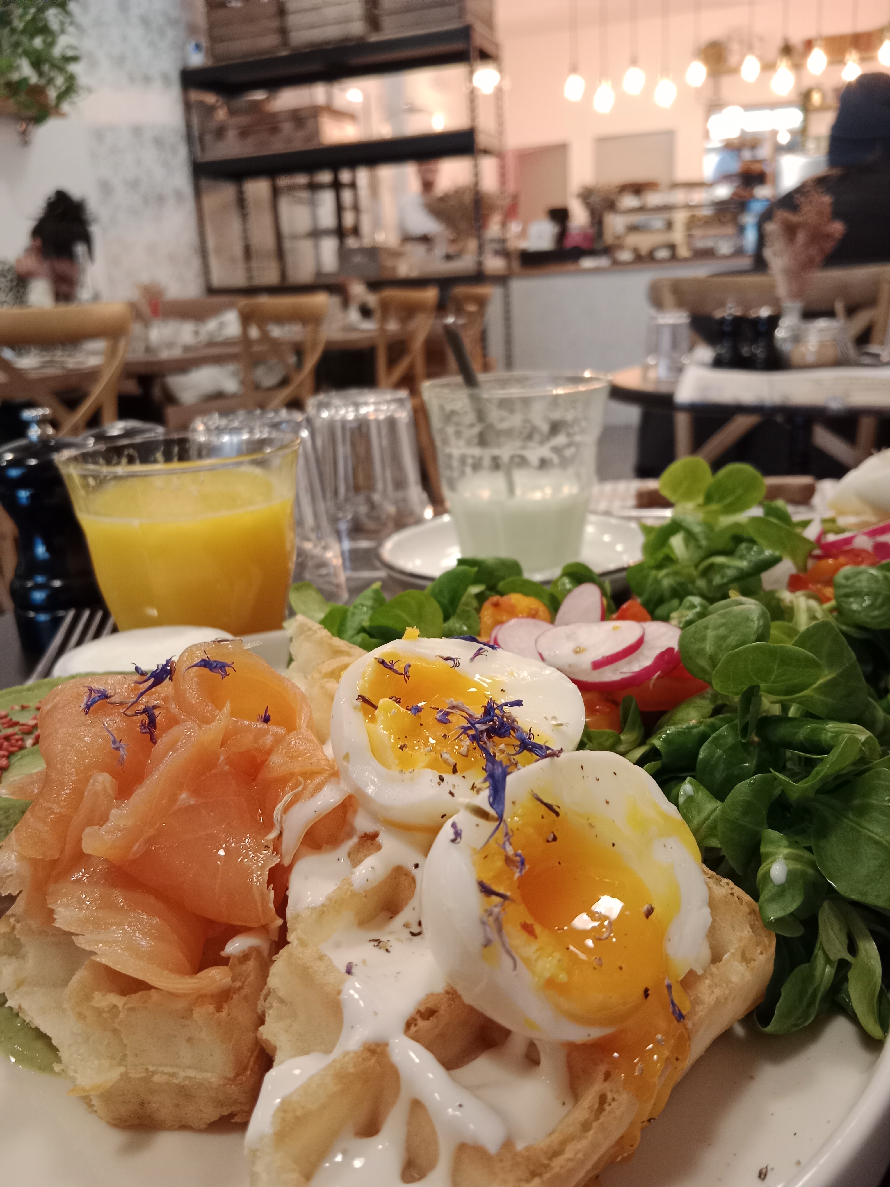 Brunch délicieux, produis frais, combinaisons surprenantes, endroit cosy et calme. Service très agréable. Recommande +++