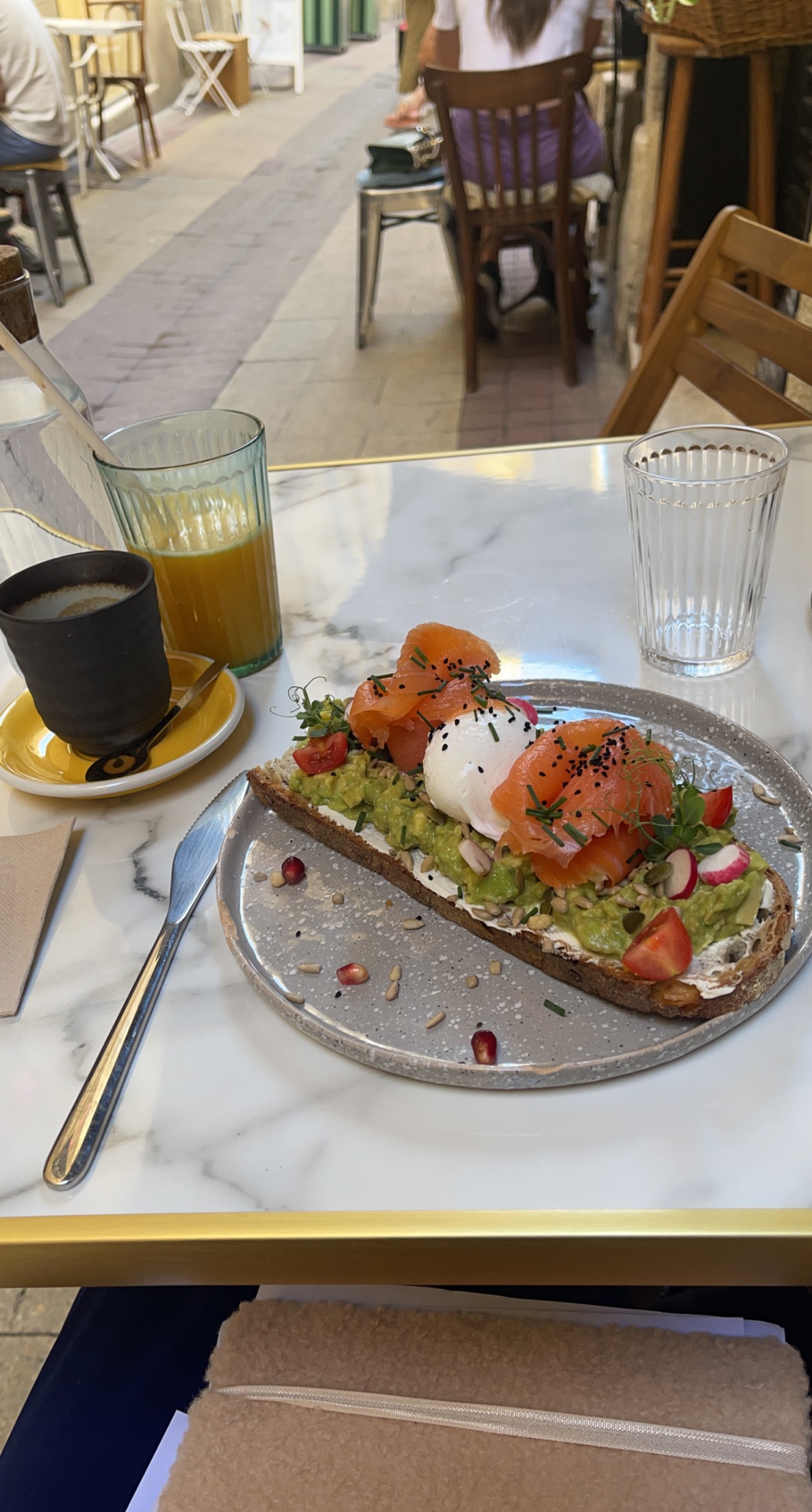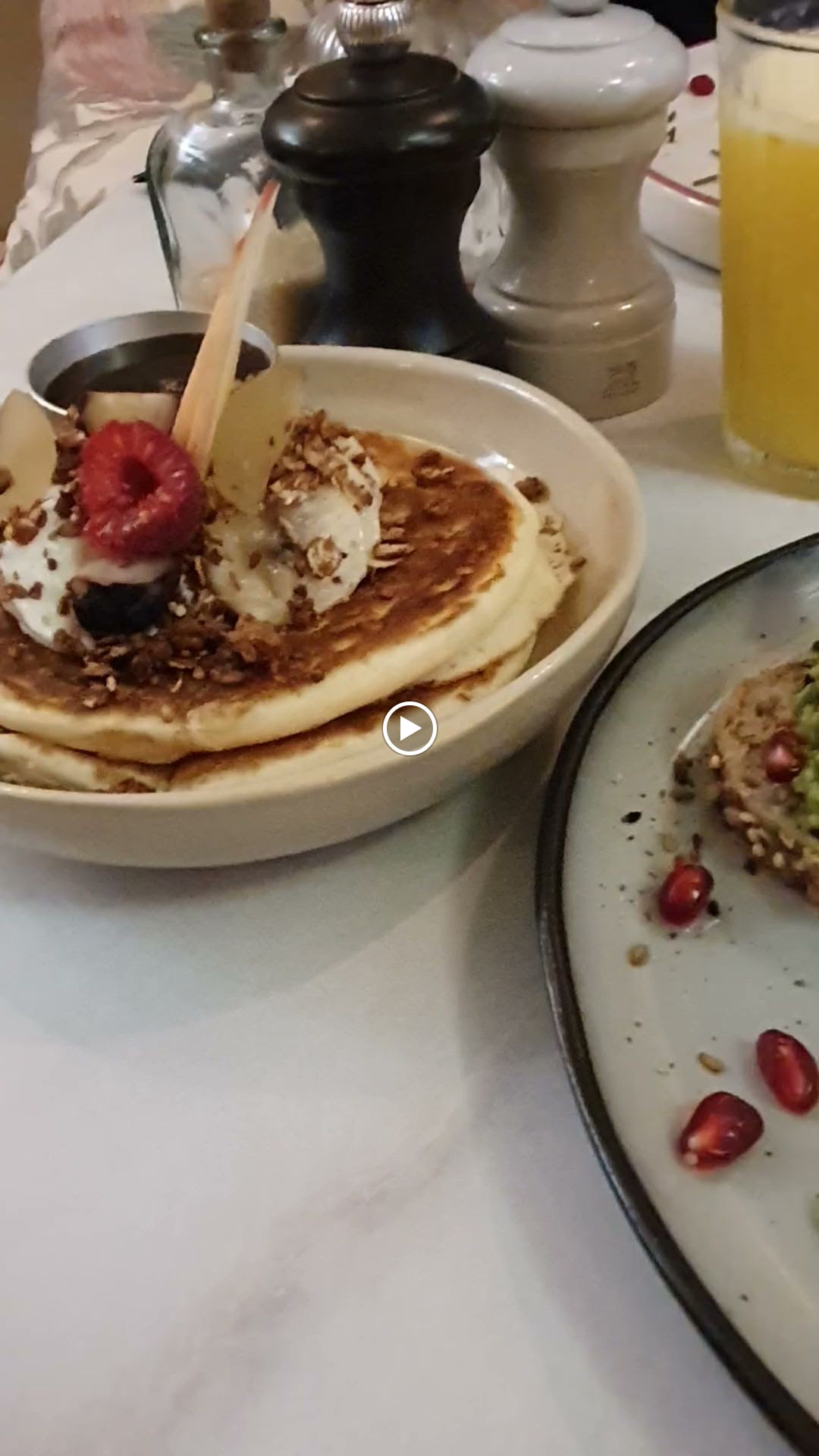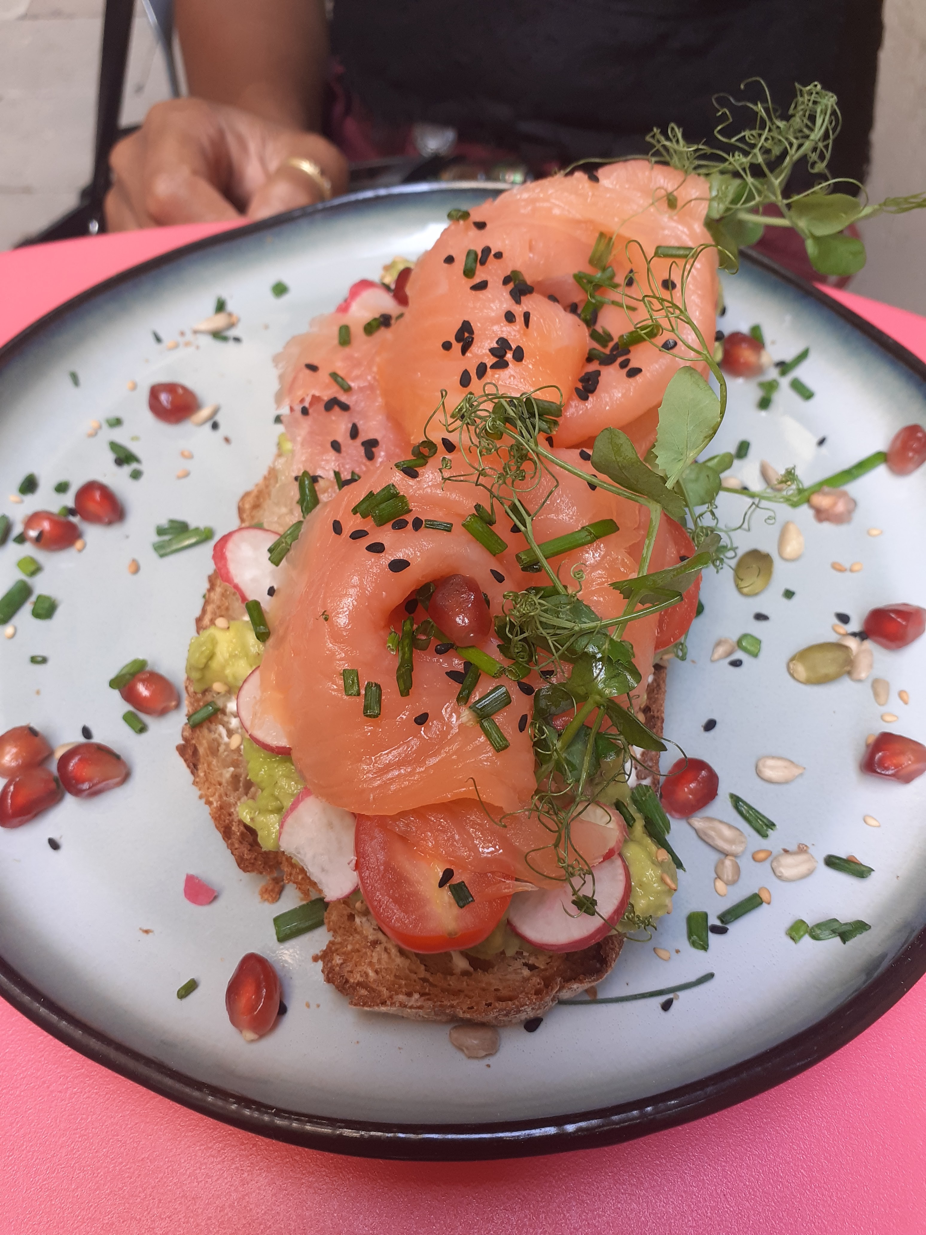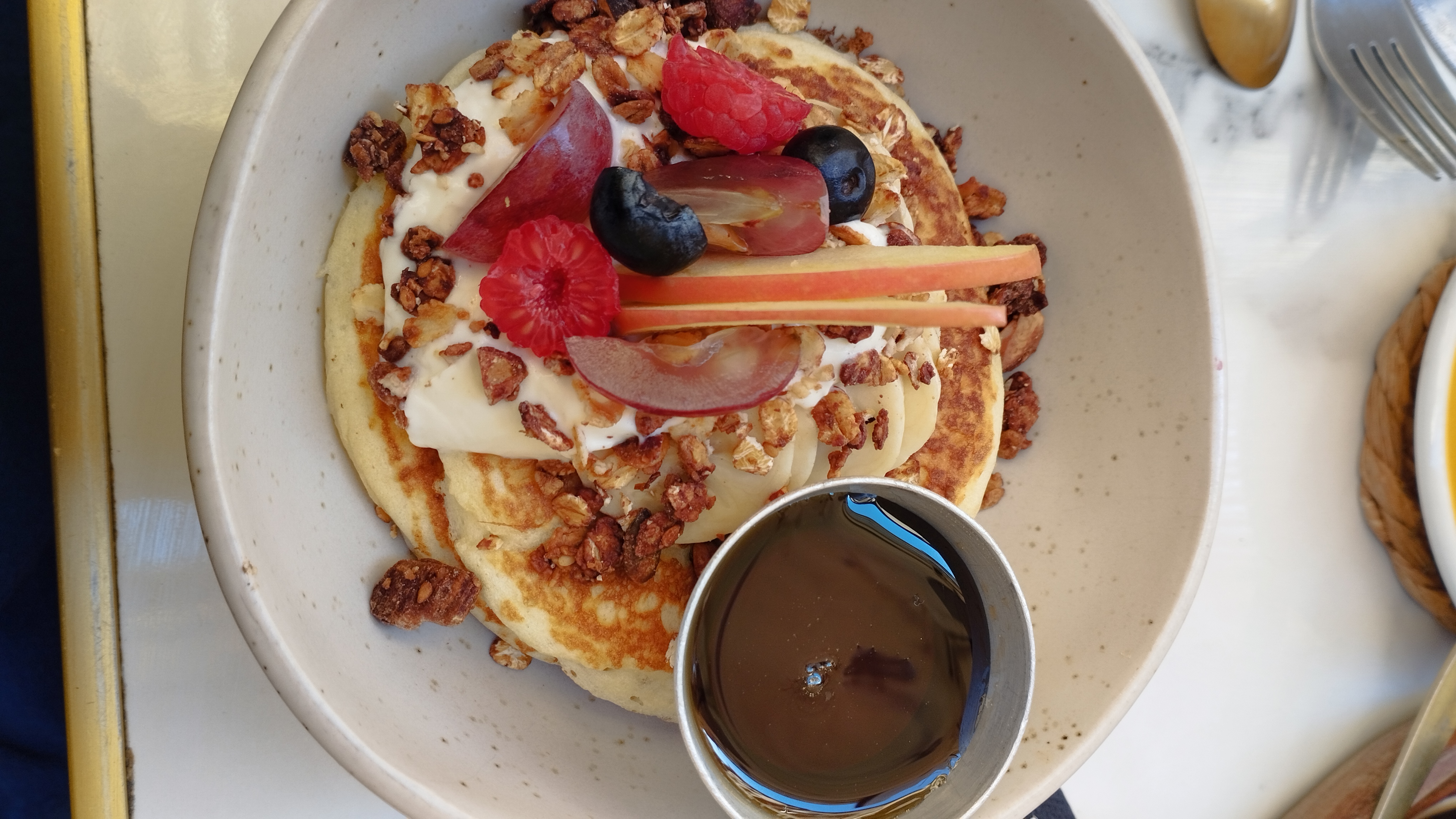 Contexte : déjeuner brunch un mardi midi avec mon partner 🌈 Magnifique découverte ! Première fois à Montpellier, petit creux, petit brunch sur la terrasse d’une petite ruelle, nous avons fini à l’intérieur à cause de la petite pluie ! L’équipe bienveillante, chaleureuse et fort sympathique ! Tout plein sourire 😀 et alors la bouffe, beh je vous laisse déguster mes amis ! 🤩 merci pour ce moment ☀️ (pas eu le temps de prendre en photo la partie salée, trop vite atterri dans les estomacs)