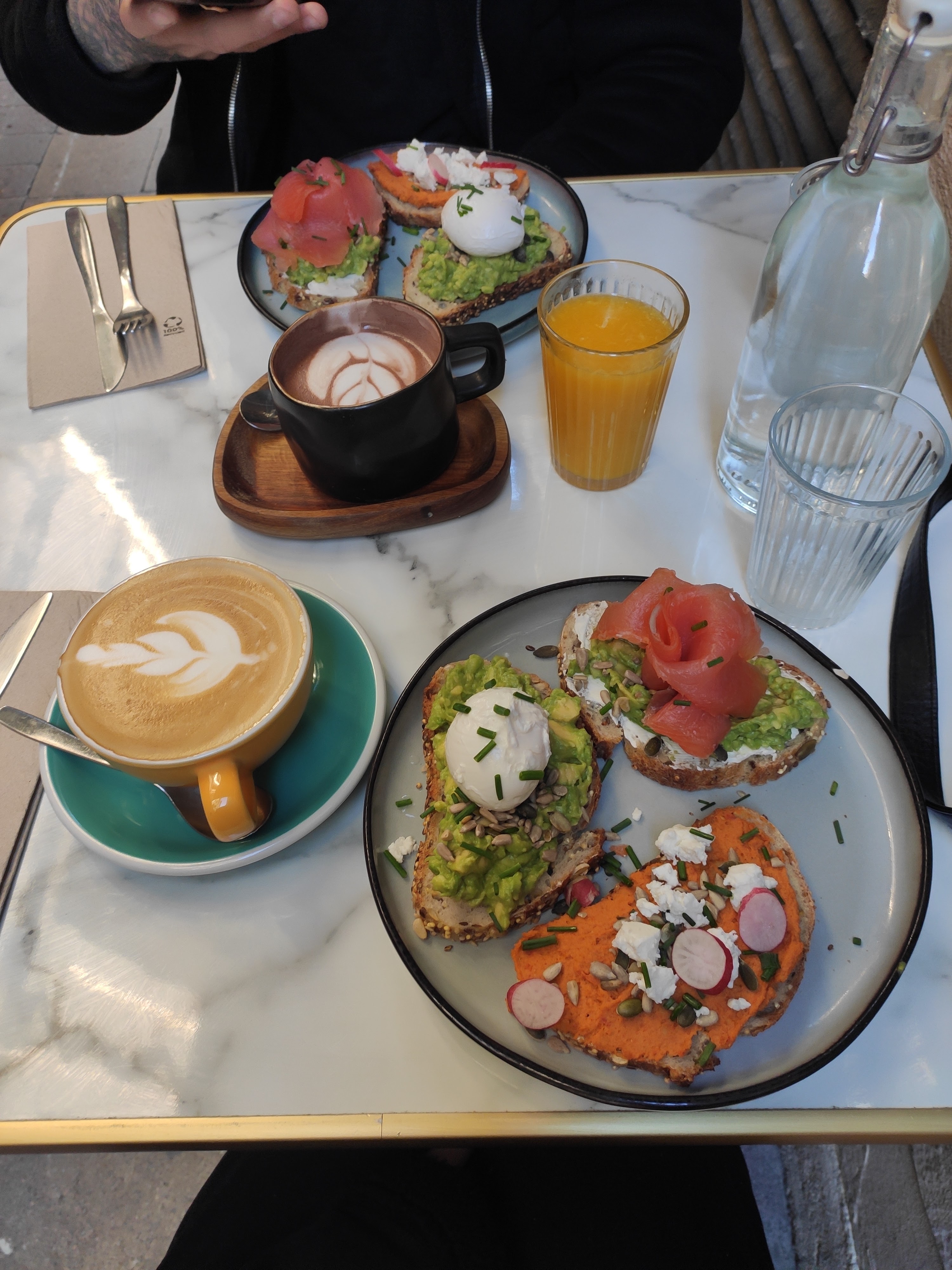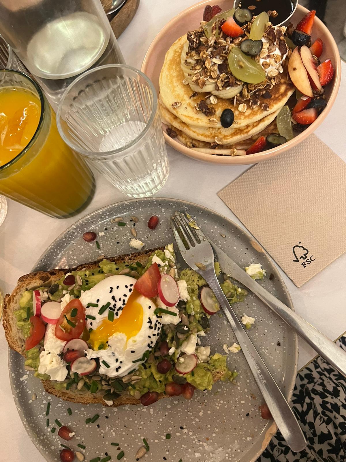 De passage à Montpellier pour le week-end, nous avons voulu tester ce restaurant pour un brunch, suite aux différents avis que nous avions lus. Nous avons pris 2 formules : excellentes ! Très copieux. Mention spéciale pour le houmous sur les tartines et les pancakes fluffy à souhait ! N'hésitez pas ! Et si le restaurant est plein, attendez un petit peu, ça vaut le coup !