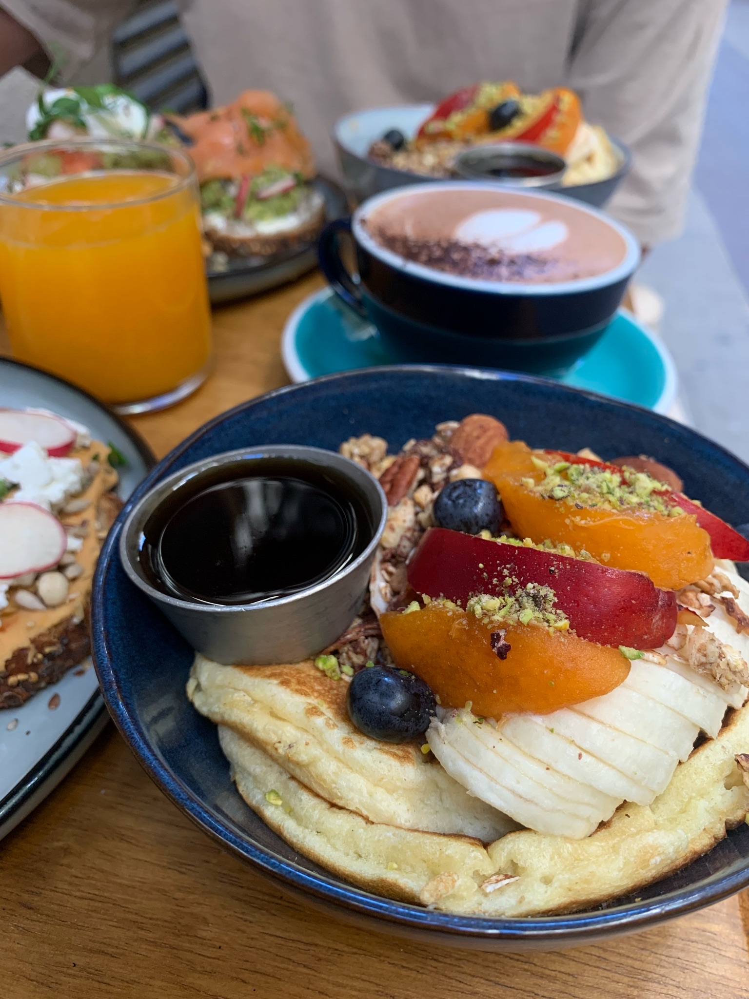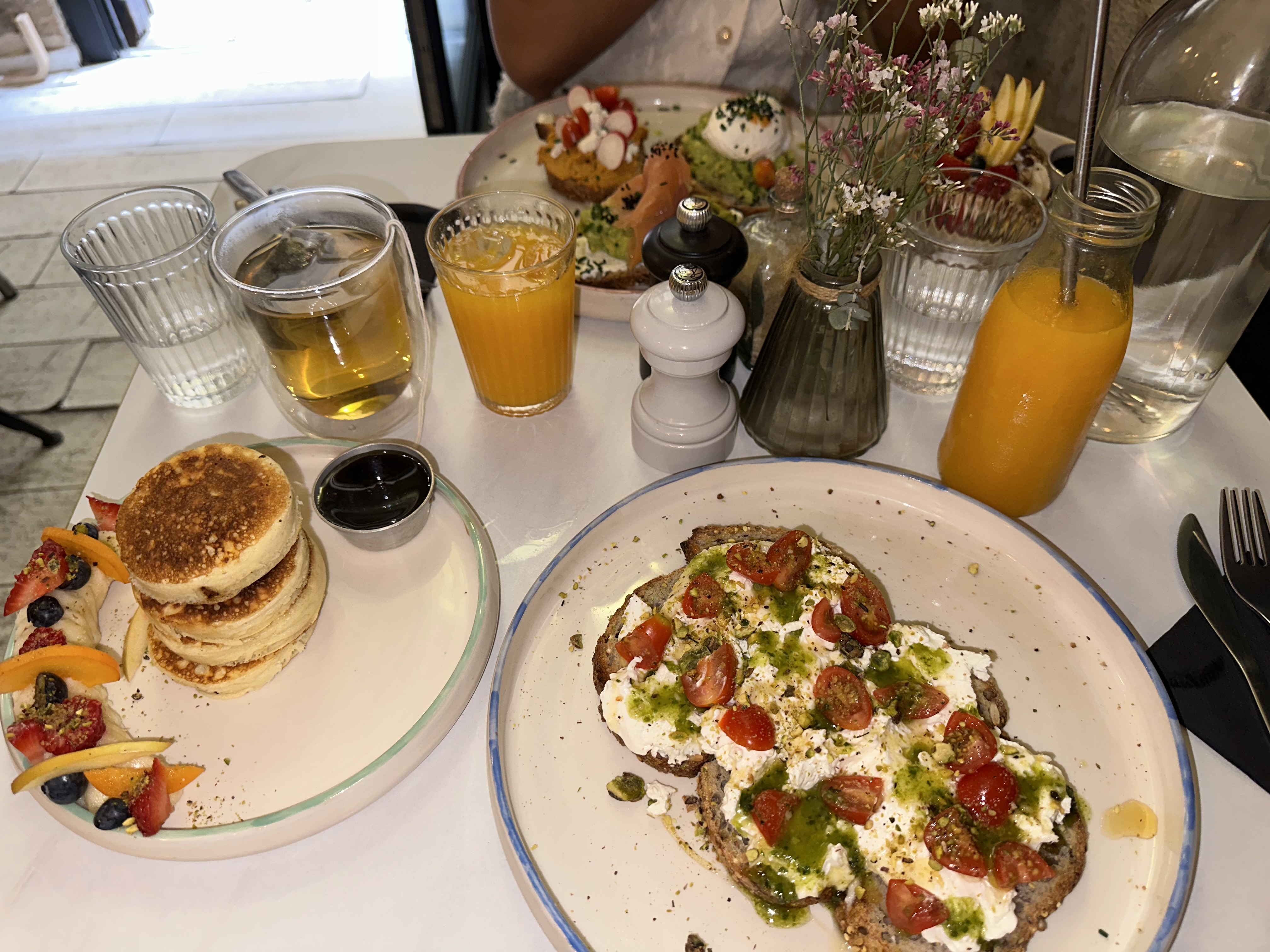 À la recherche d'un brunch à réserver en terrasse, on a trouvé celui-ci et c'était juste parfait ☀️ le service client juste adorable et à l'écoute, et en ce qui concerne les plats tout était frais et excellent 😍 les plats salés étaient super bien assaisonnés, le jus d'orange pressée une tuerie et les pancakes tout juste ce qu'il faut pour terminer le repas sur une bonne note 😋 juste foncez-y vous n'allez pas le regretter 😉