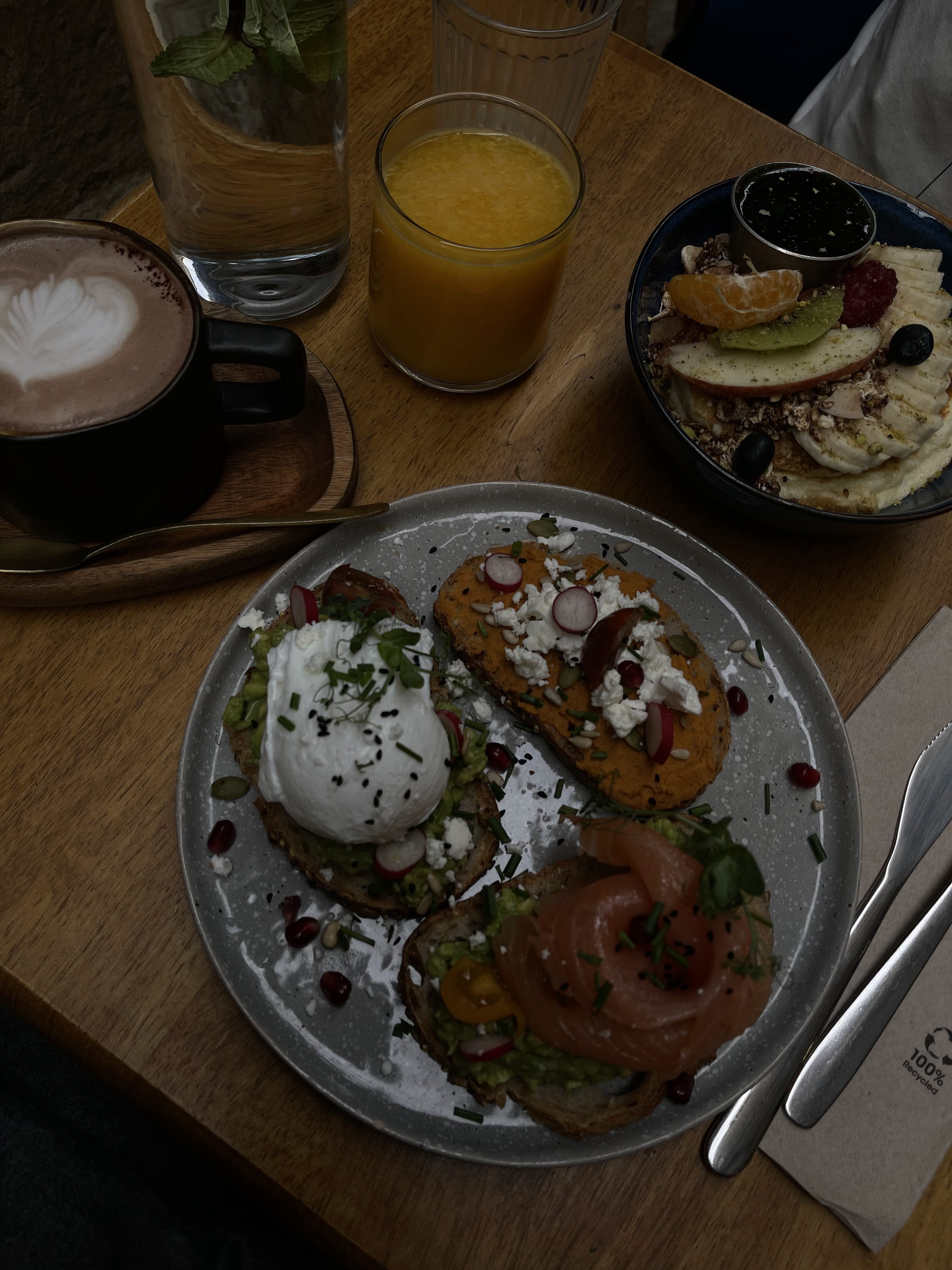 J'ai TOUT aimé: la déco, la gentillesse et l'accueil du personnel aux petits soins avec la clientèle, et la carte! Les plats sont aussi beaux qu'ils sont bons! Javais pris les Turkish eggs et le granola et c'était délicieux! Je reviendrai goûter le reste de la carte! Un sans fautes, je recommande! :)
