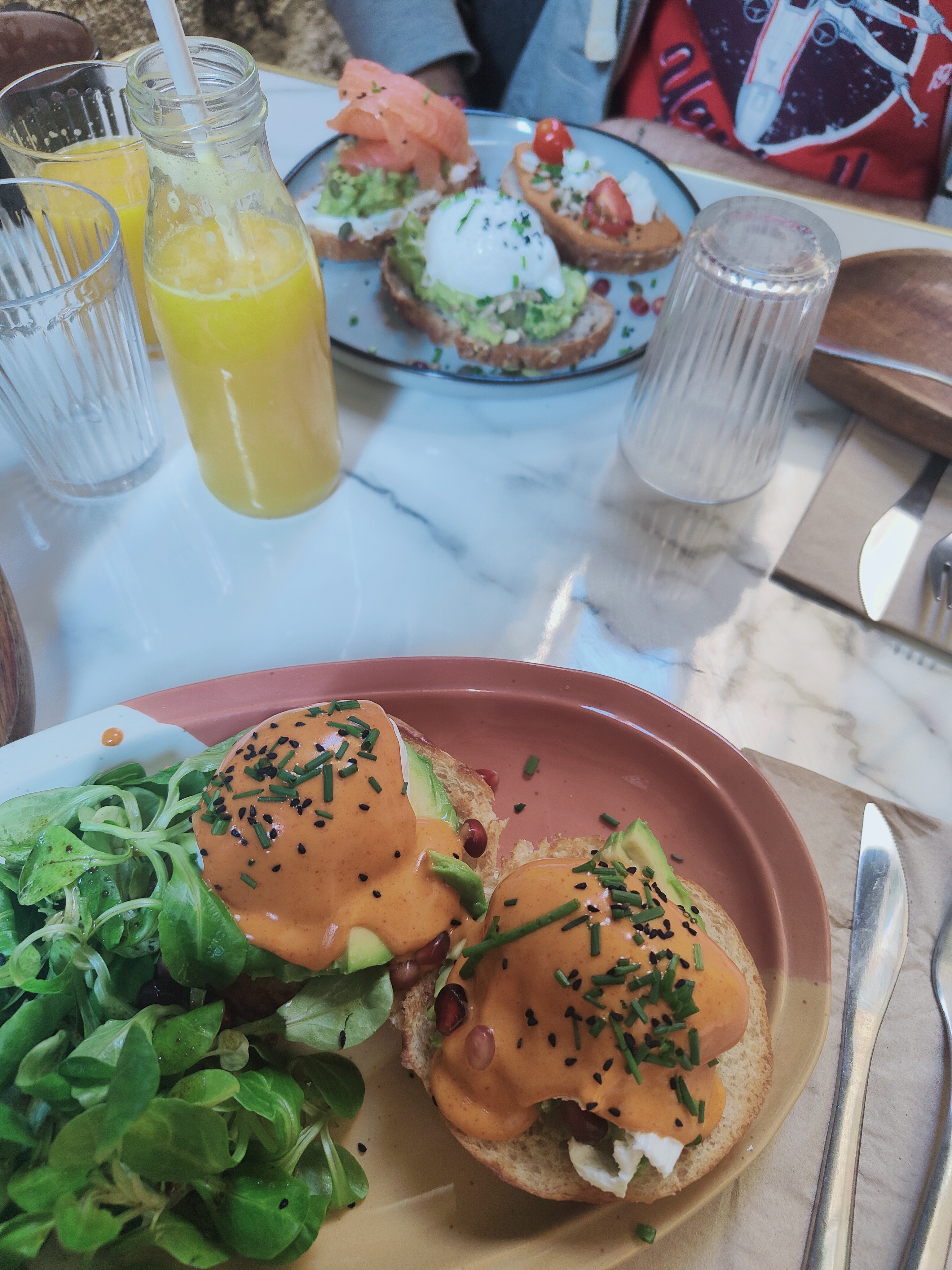 Côté cuisine : excellent rien à redire. Des oeufs benedict vraiment très savoureux. Côté service : on a voulu nous enlever nos assiettes alors que nous étions encore en train de manger. 1 minute après, rebelote, la serveuse demande si elle peut nous débarrasser,mais une personne (on était 4) n'avait pas terminé. J'ai demandé à ce qu'elle attende qu'on ait toutes fini pour être débarrassées. Le Béaba du service n'est pas là...