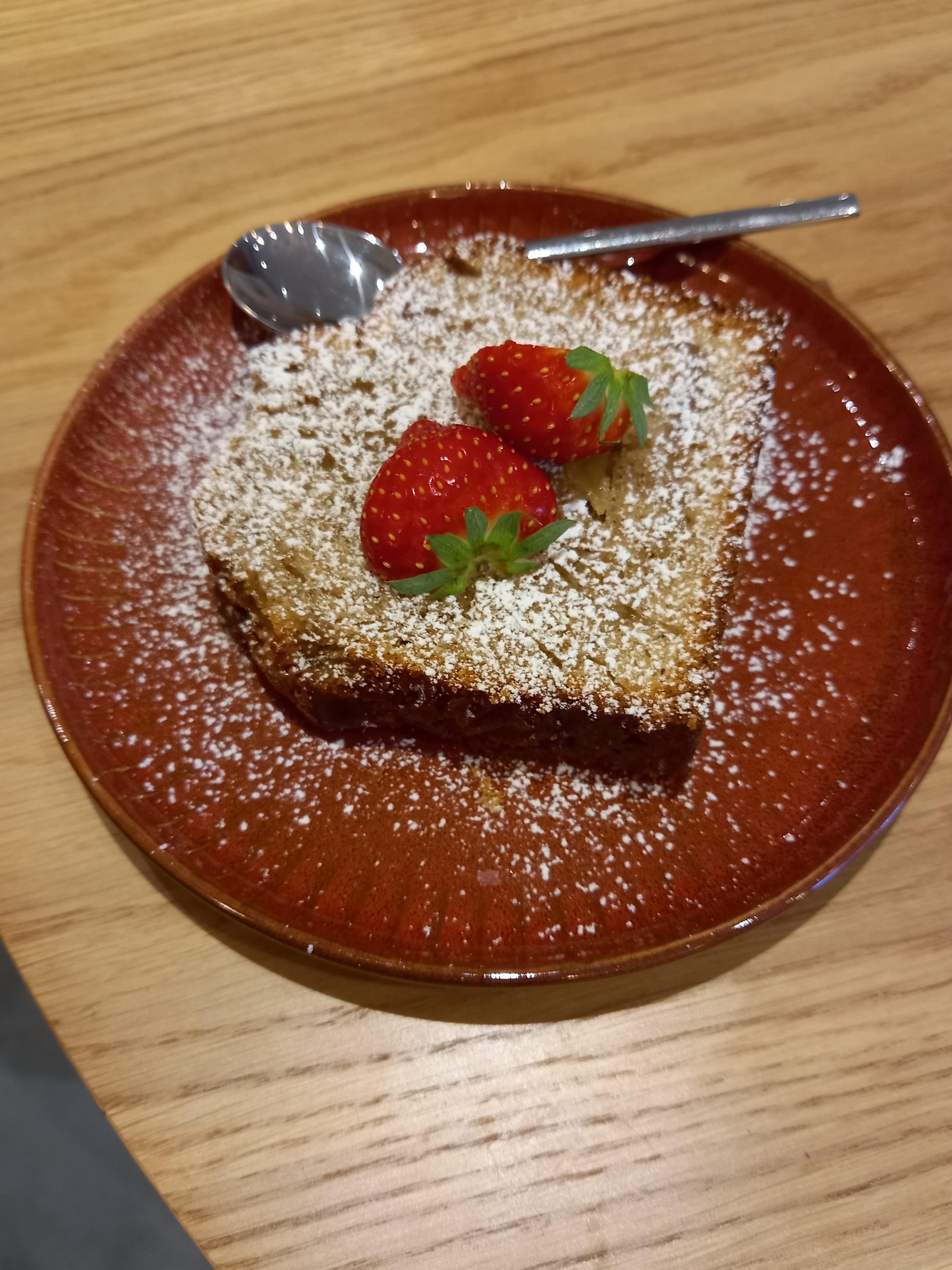L'endroit est bien placé et sympathique. Une belle terrasse et intérieur cosy. Le cake marbré était sec en bouche et le thé glacé sans sucre dommage.