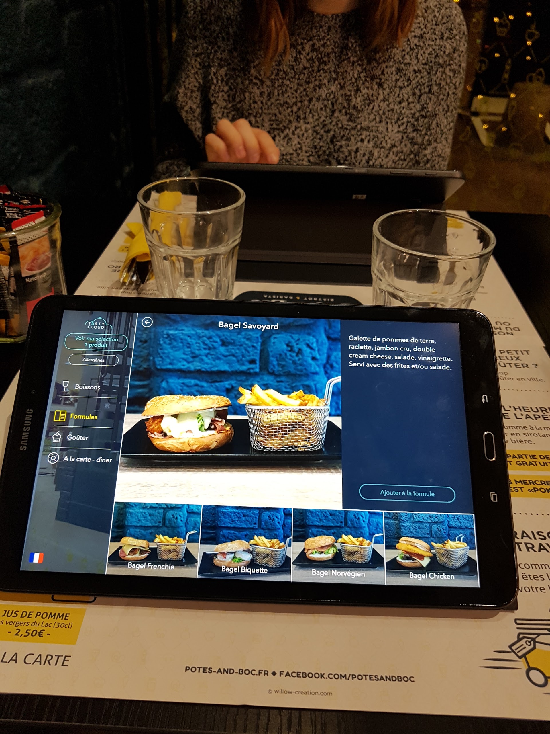 Restaurant sympa avec le concept des cartes et prise de commande sur tablette. Idéal pour sortie entre amis, un large choix d'apéritifs et bières. Les bagels sont très bons et desserts également.. Il y'a du choix. Je recommande !
