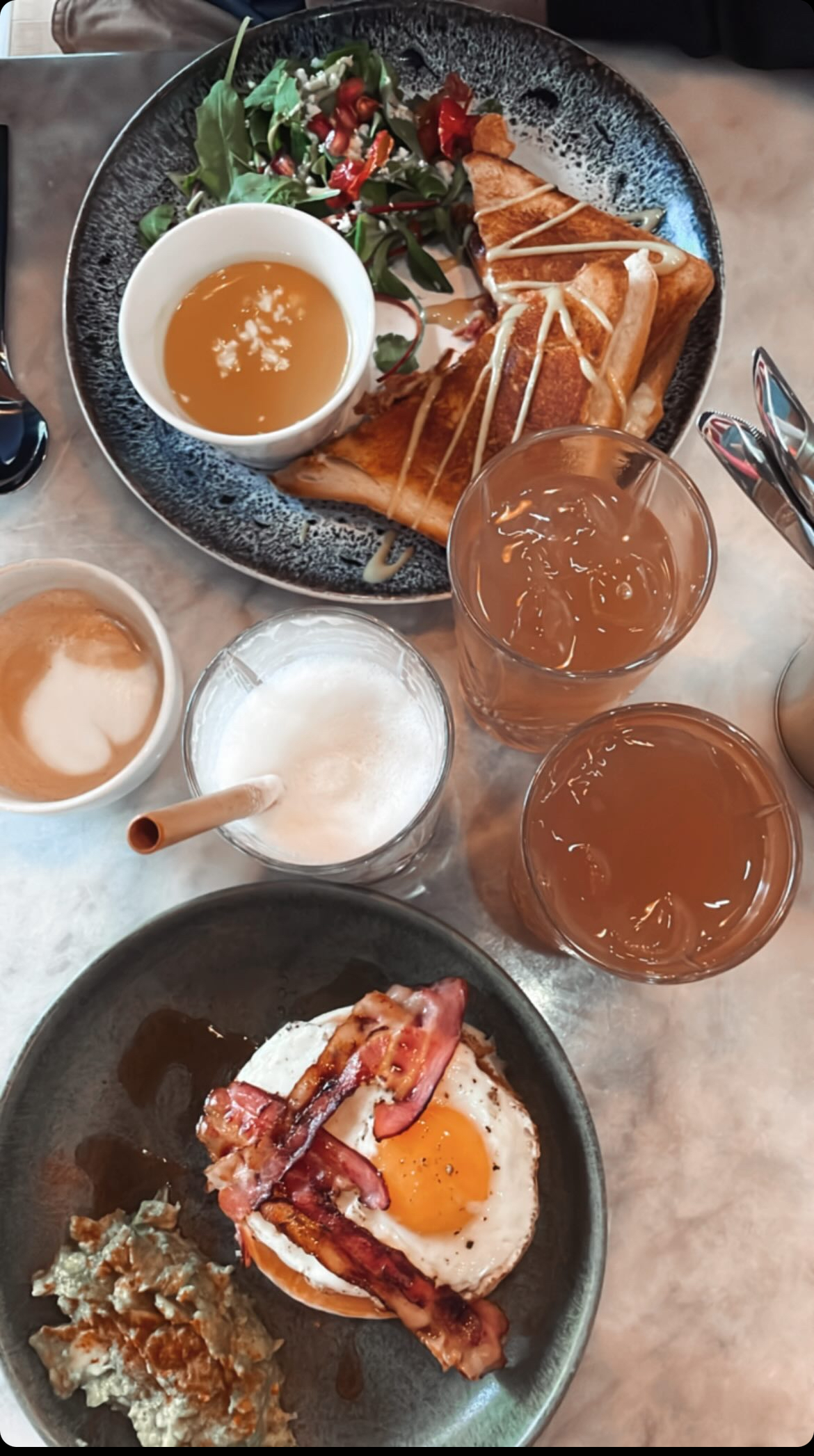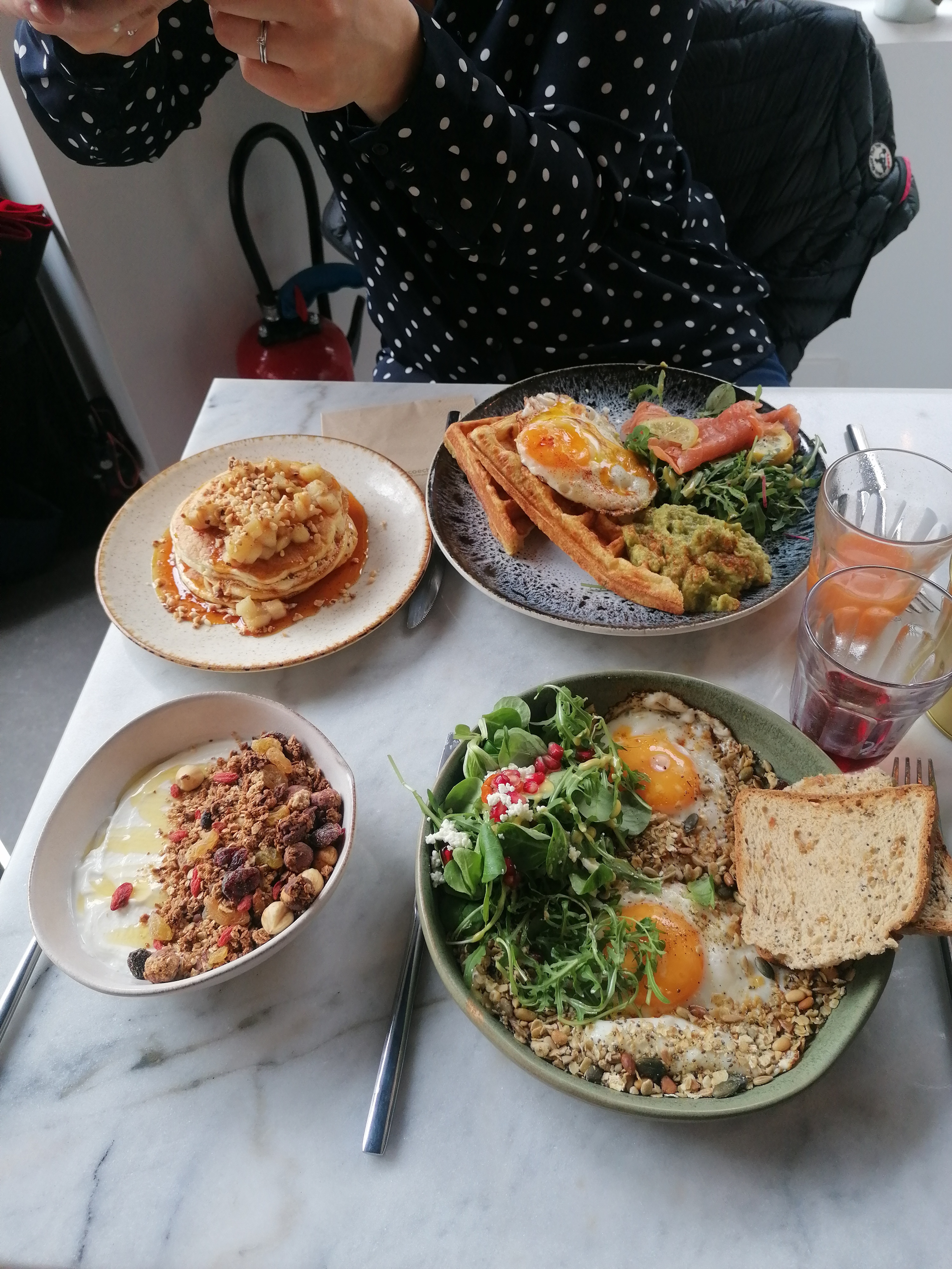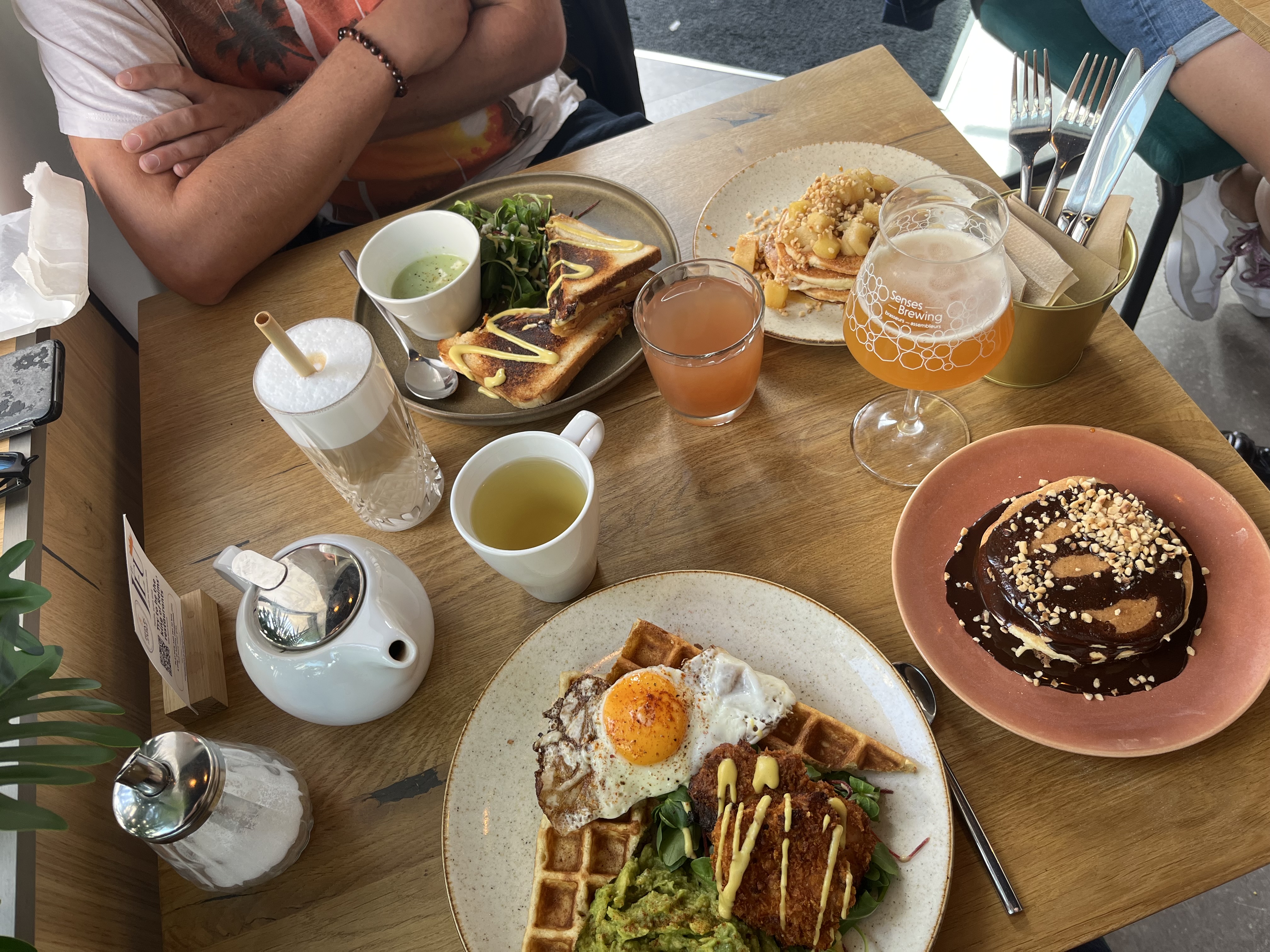 Brunch avec gaufre qui est à tombé par terre ! Service de qualité, produits de qualités, tout était parfait. Nous avons passée un très bon moment à sacré brunch. A très vite 🥰🫶🏽