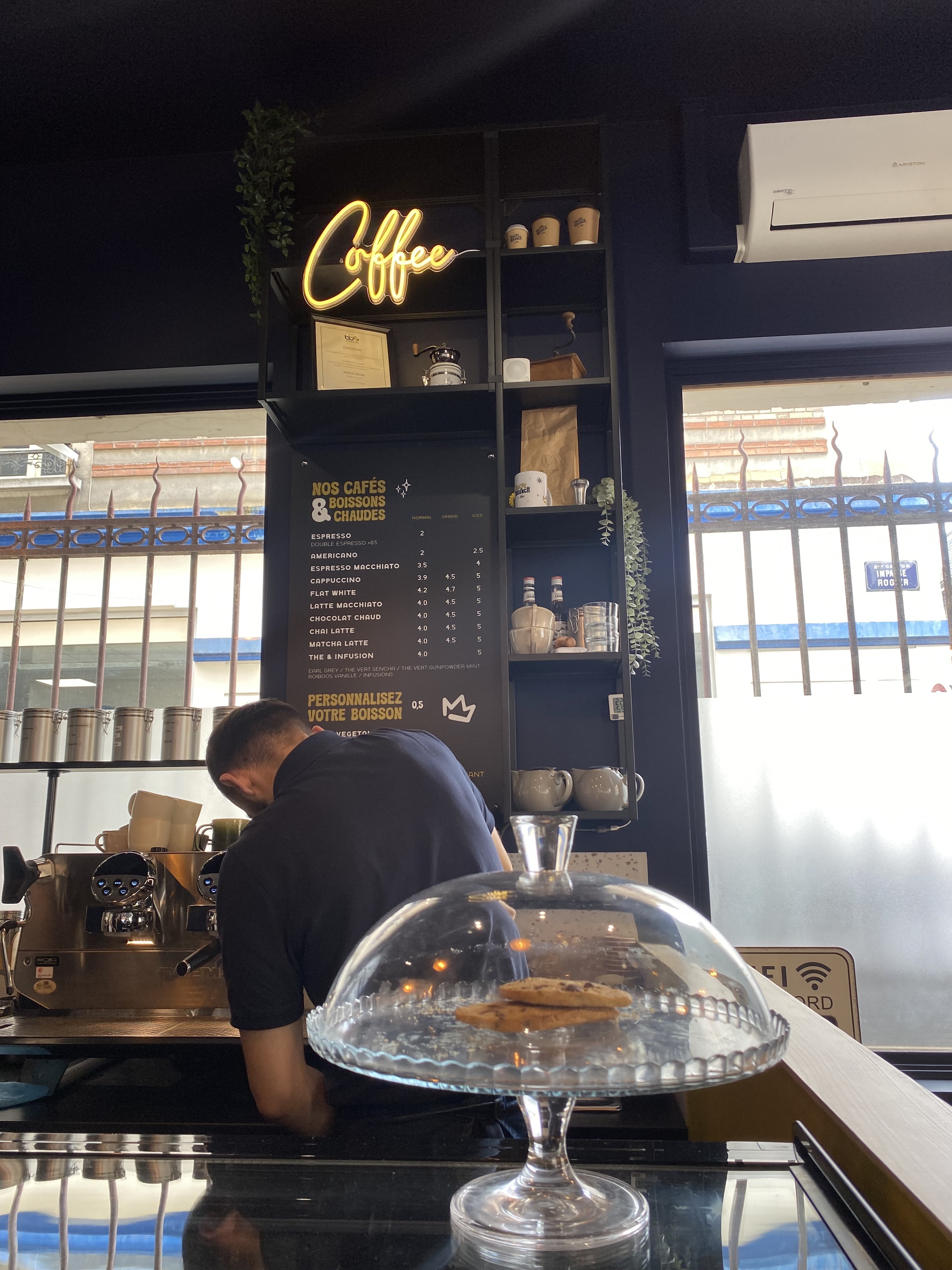Nous avons découvert un vrai trésor. Le café est super avec beaucoup de choix. Le flat white était parfait. On a mangé un chakchouka et un grilled cheese. Les deux plats étaient délicieux. Service bilingue a bien aidé mon mari. Les staffs sont très accueillants et attentifs. 5 stars ⭐
