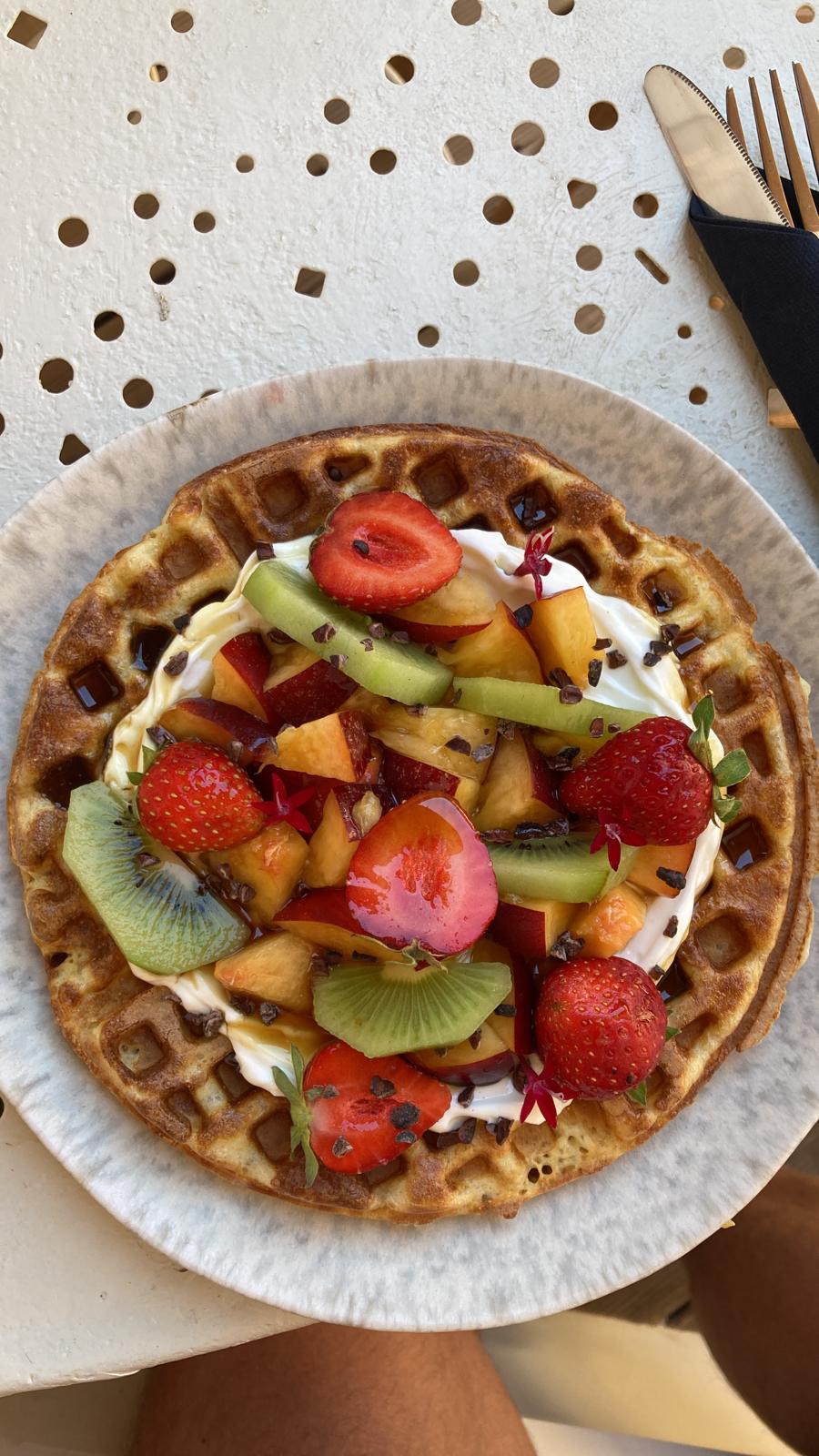 Joli petit café face à l'océan, avec une ambiance sympa et un personnel sympathique. Nous avons vraiment apprécié les jus et les gaufres 😊