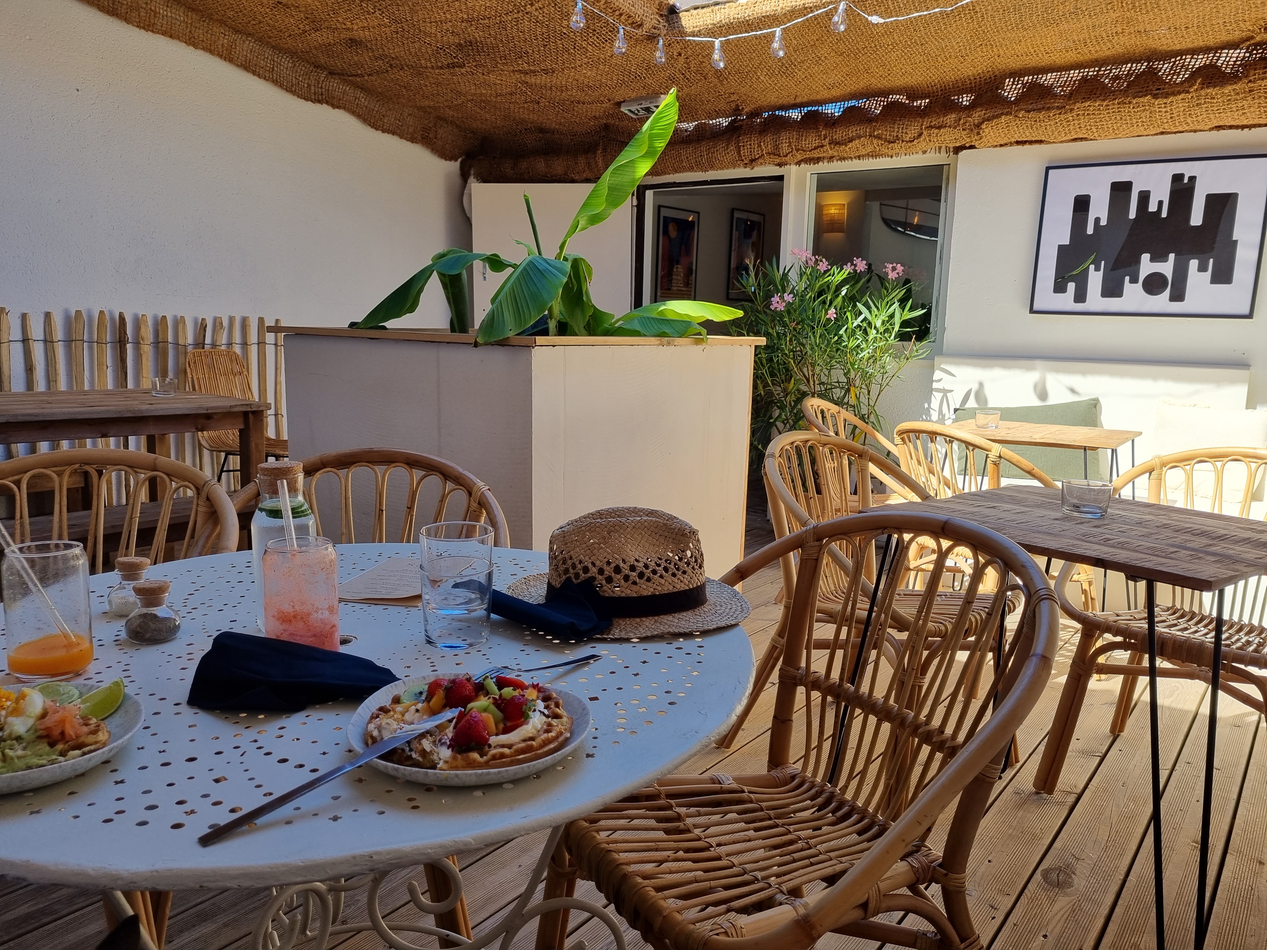 Super endroit pour se détendre après la plage en matinée ou l'après-midi. Ils ont un patio au calme très sympa. Les cocktails sont bons, sains et avec des produits frais. Le brunch est très original et bon. Originalité, les tables sont équipées de prises et de bornes de recharge et ils proposent le WiFi gratuit aux clients. Les chiens sont acceptés