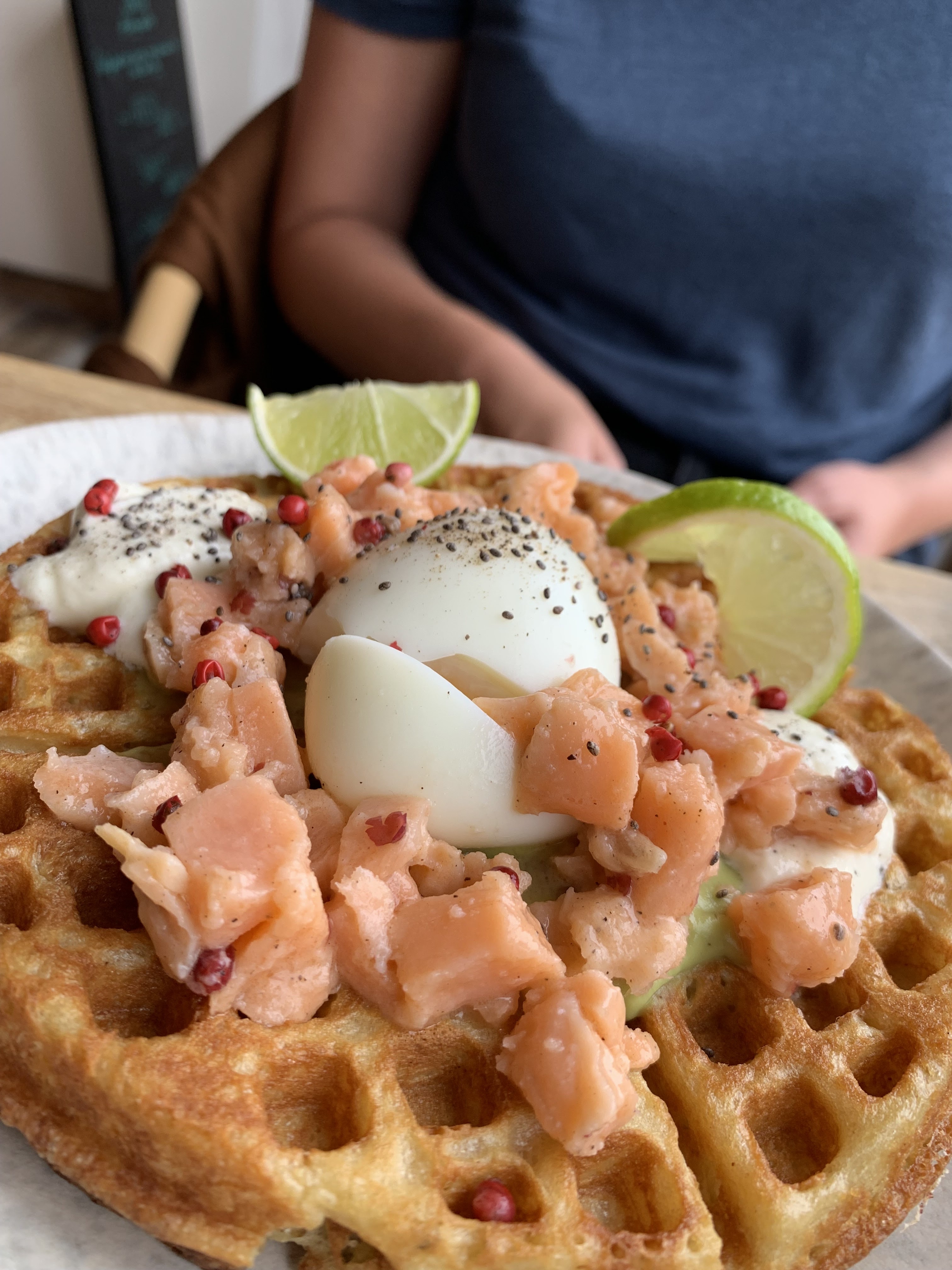 Large choix de jus et boissons originales avec produits frais et de qualité ! Gaufres excellentes, +1 pour l’idée des gaufres salées ! Lieu calme et encore +1 pour le service en continu ! Et la déco .. carrément top !!! Recommandé à 100000%