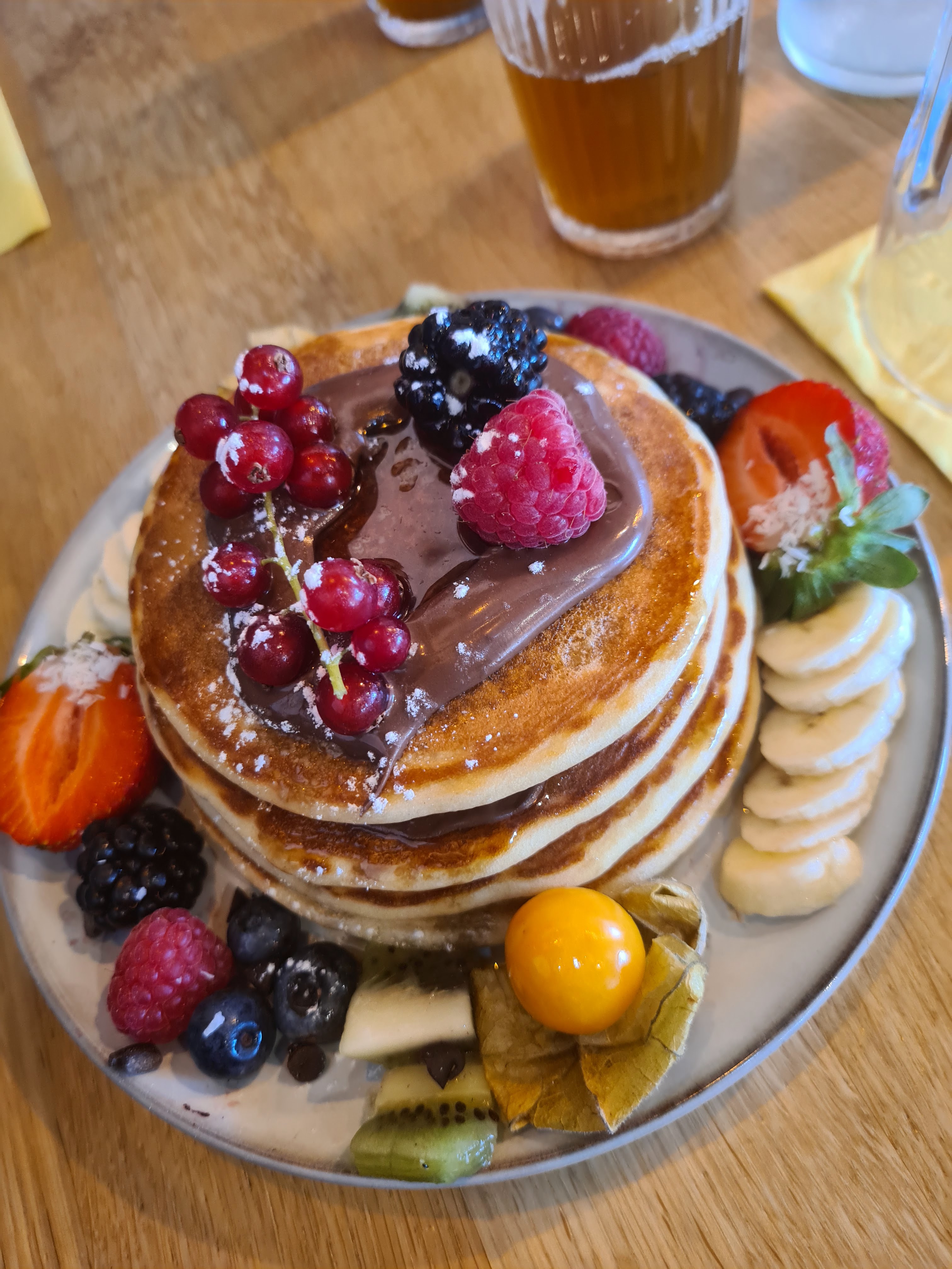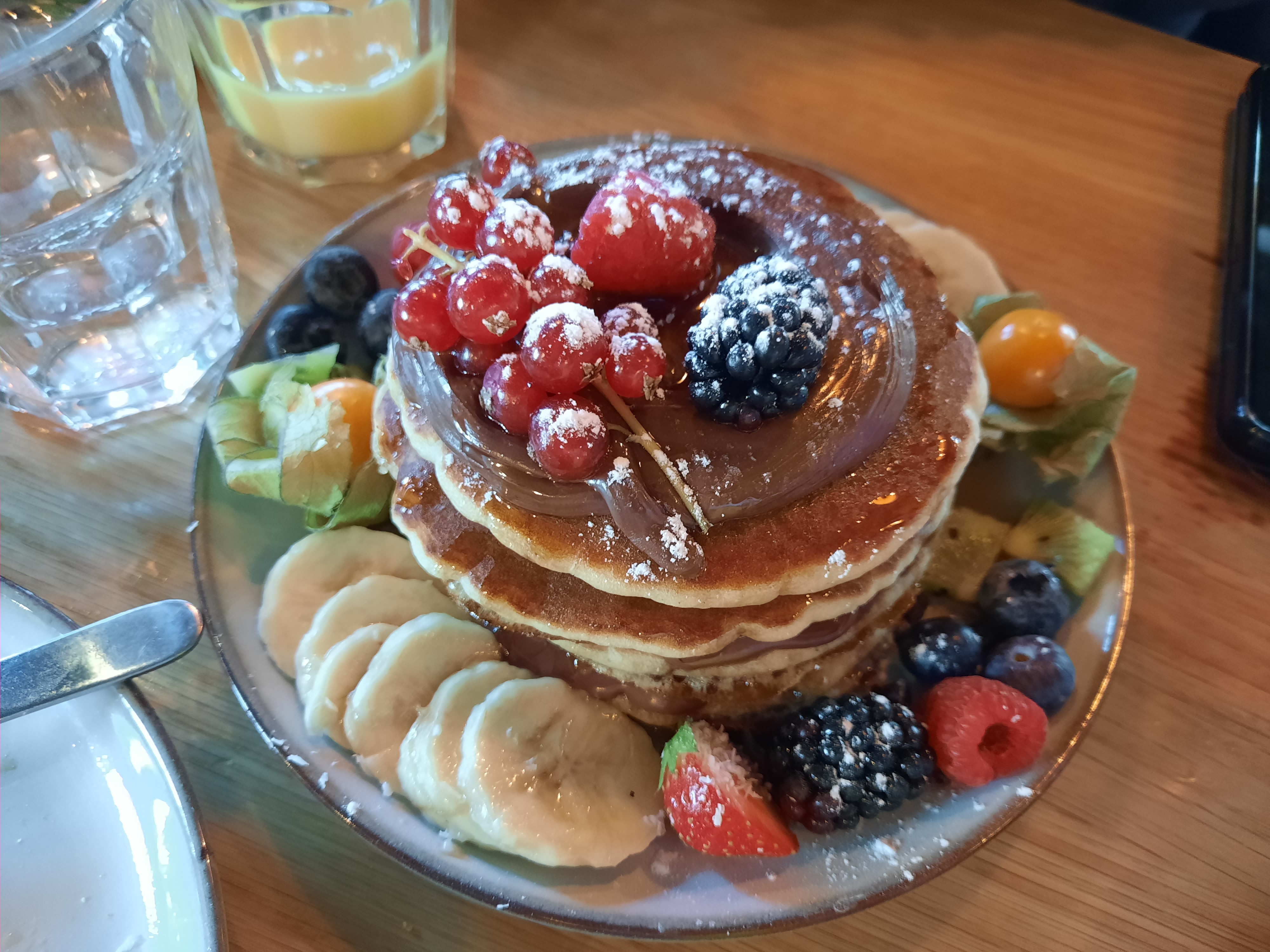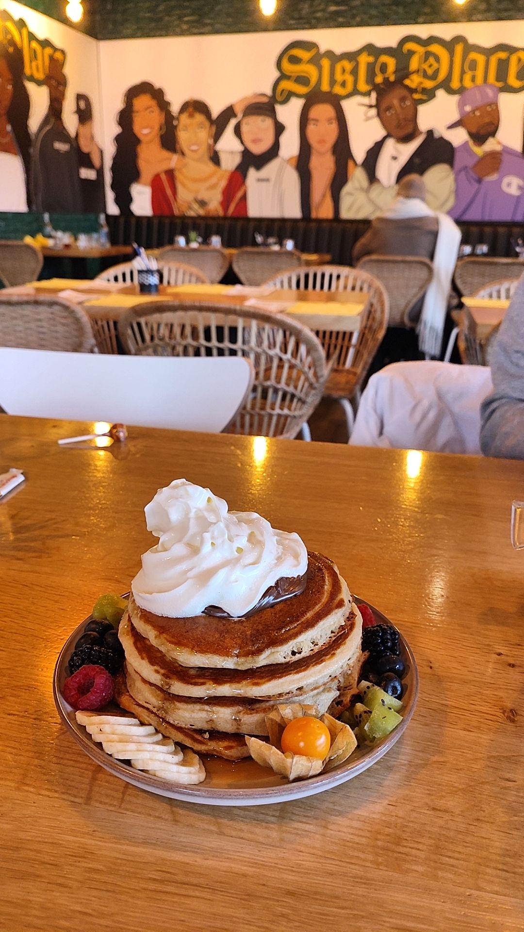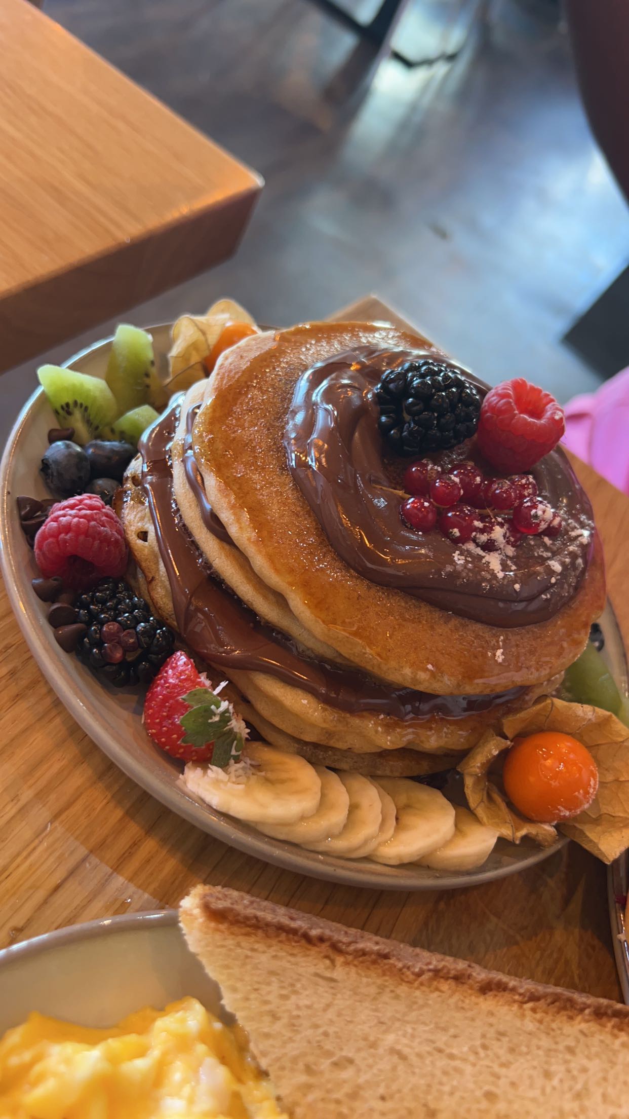 Restaurant propre accueil irréprochable. Alors au niveau des pancakes 🥞 dans l’ensemble c’était bon mais les pancakes manquait un peu de volume pour avoir ce côté un peu plus aéré et moins sec. Les fruits autour étaient bon. Petit point négatif l’assiette était trop petite pour pouvoir couper les pancakes. Le strawbanane été bon. Je reviendrais pour goûter le salé.