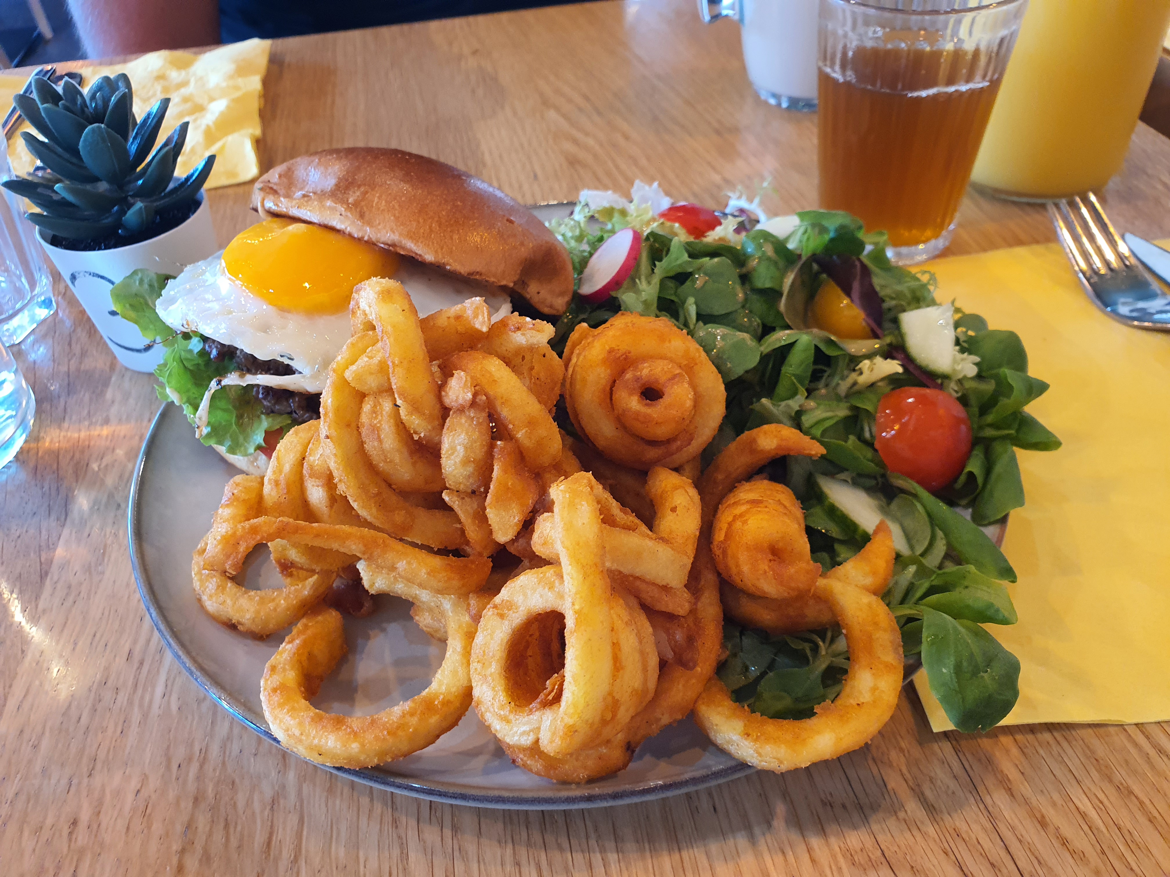 Nous nous sommes rendu ce dimanche pour bruncher. Tout d’abord c’est super cool d’avoir enfin ce type de restaurant dans le coin. La déco et hyper sympa et le personnel top. Nous ne savions pas que c’était sur réservation et ils nous ont trouvé une table (annulation de dernière minute on a eu de la chance). On a pu avoir en plus une chaise haute pour bébé. Plats super copieux. Pour vous dire, j’ai pris les pancakes avec Nutella, pâte spéculos et beurre de cacahouète, ça m’a calé jusqu’à 21h ! Il y a eu une erreur dans la commande de mon mari mais tout de suite cela a été changé avec le sourire. D’ailleurs, le service est super rapide, c’est top quand on a faim le matin. Le seul bémol c’est le prix du supplément saucisse. Je ne m’attendais pas à avoir 3 minis saucisses cocktails pour 3€ lorsque j’ai commandé. 1€ la mini saucisse c’est cher payé quand même. Ah et les frites sont EXCELLENTE ! Du coup je recommande mais pas les saucisses 😂