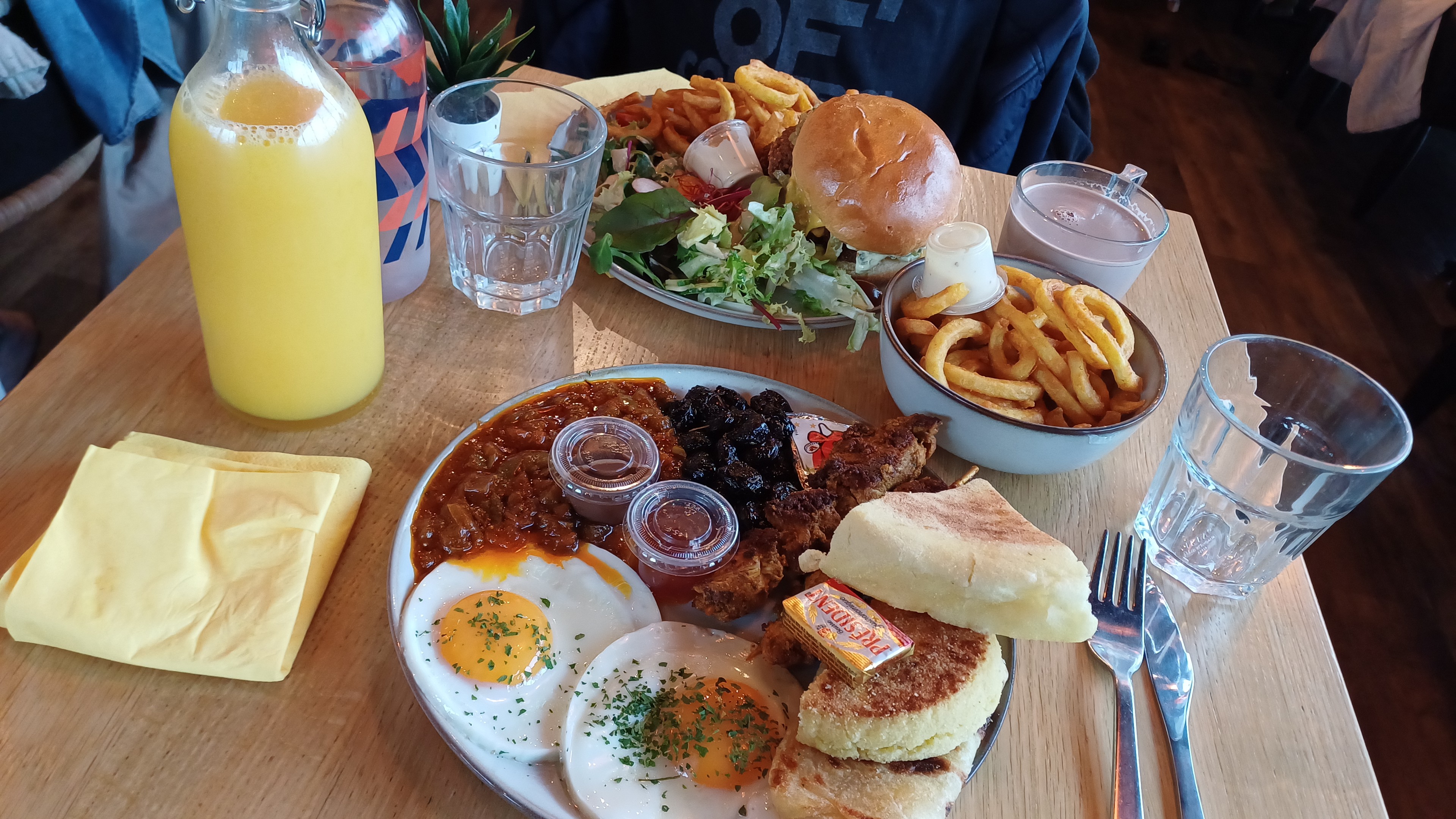 Les plats sont copieux et très très généreux. Je suis venue 2 fois et le service est beaucoup trop long même si la salle n'est pas pleine. Les plats n'arrivent pas tous en même temps pour chaque personne donc décalage. Le jus d'orange n'est clairement pas un jus frais pressé et la carte des boissons chaudes gagnerait à être étoffée